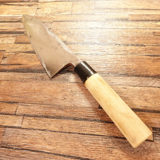 Misono Honesuki Knife, Sharpened, Misono Boning Knife, Swedish Steel, Some Hammer Marks on Spine, Wooden Saya, 180mm