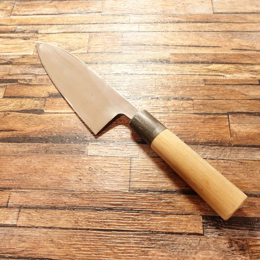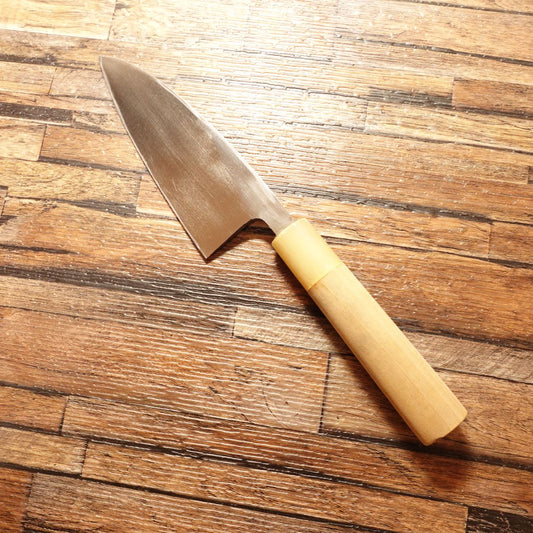 Sakai Toji Deba Knife, Sharpened, Water Buffalo Handle, Hagane, Single-Edged, Lightly Used, 170mm