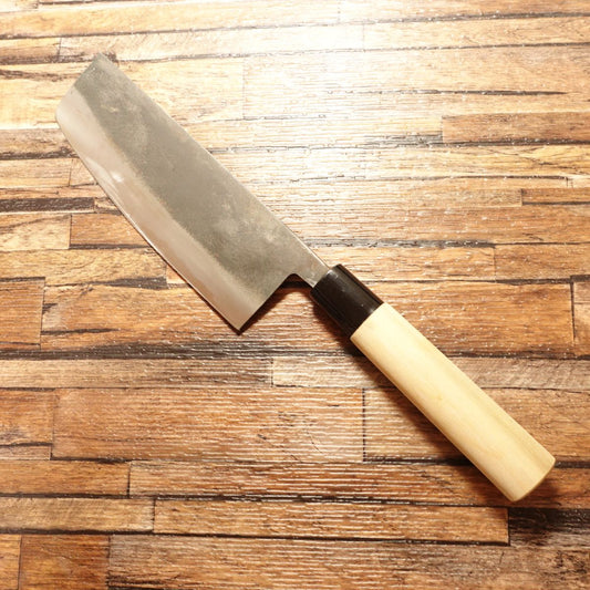 Sakai Naosuke Nakiri Knife, Sharpened, Kurouchi, Double-Edged, Sticker on Handle, Nearly Unused Stored, 165mm