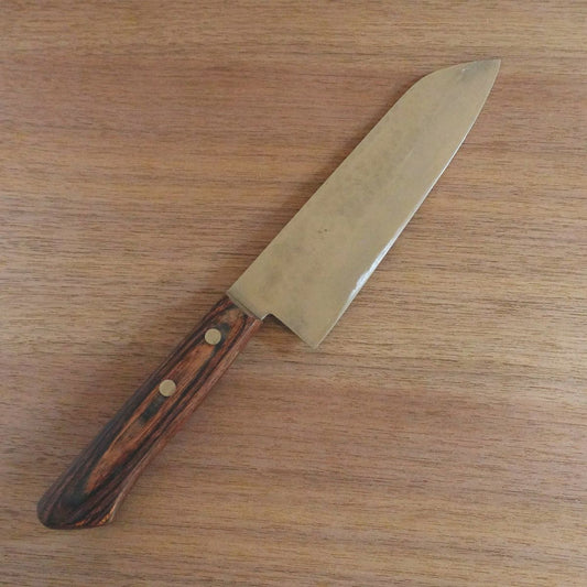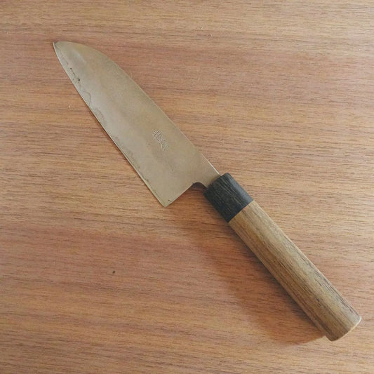 Nagaragawa Santoku Knife, Sharpened, Tsuchime Finish, Handcrafted, Nearly Unused, 165mm