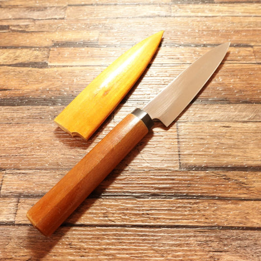 Kai Cut Petty Knife, Sharpened, Wooden Saya, Fruit & Garnish Knife, Stainless Steel, 95mm