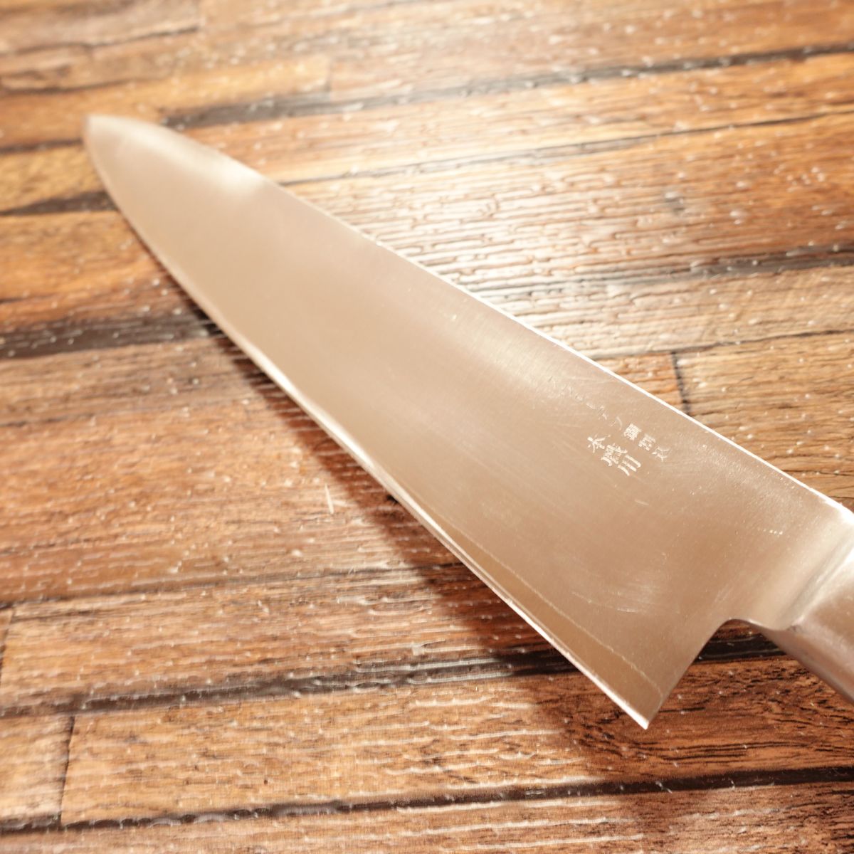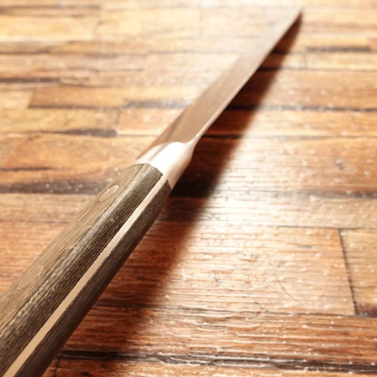 The Gyuto is a Western-style all-purpose knife, ideal for cutting meat, fish, and vegetables. This is a double-edged blade.