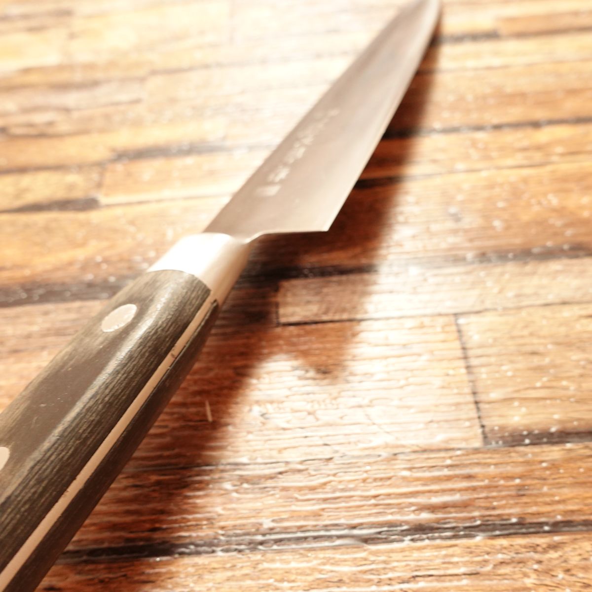 Made from Swedish steel with a warikomi (3-layered) construction, this knife offers excellent sharpness and is relatively easy to maintain.
