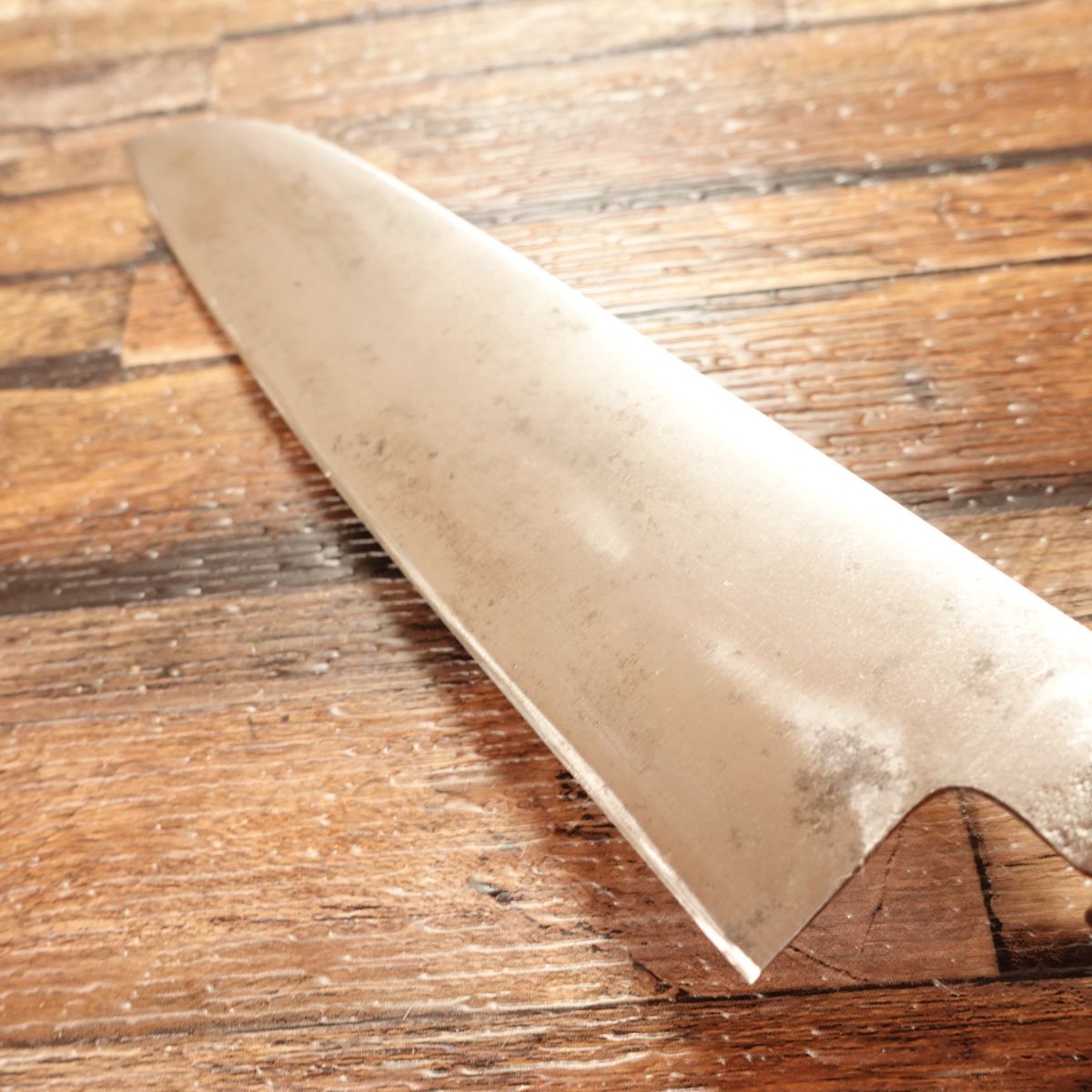 This is a Japanese-style Santoku knife crafted by Sakai Ichiji. The blade length is measured from the notch (machi) to the tip. As a versatile knife, it is perfect for cutting meat, fish, and vegetables, making it an excellent choice for everyday cooking. The handle is made with water buffalo horn, offering both a comfortable grip and a premium appearance.