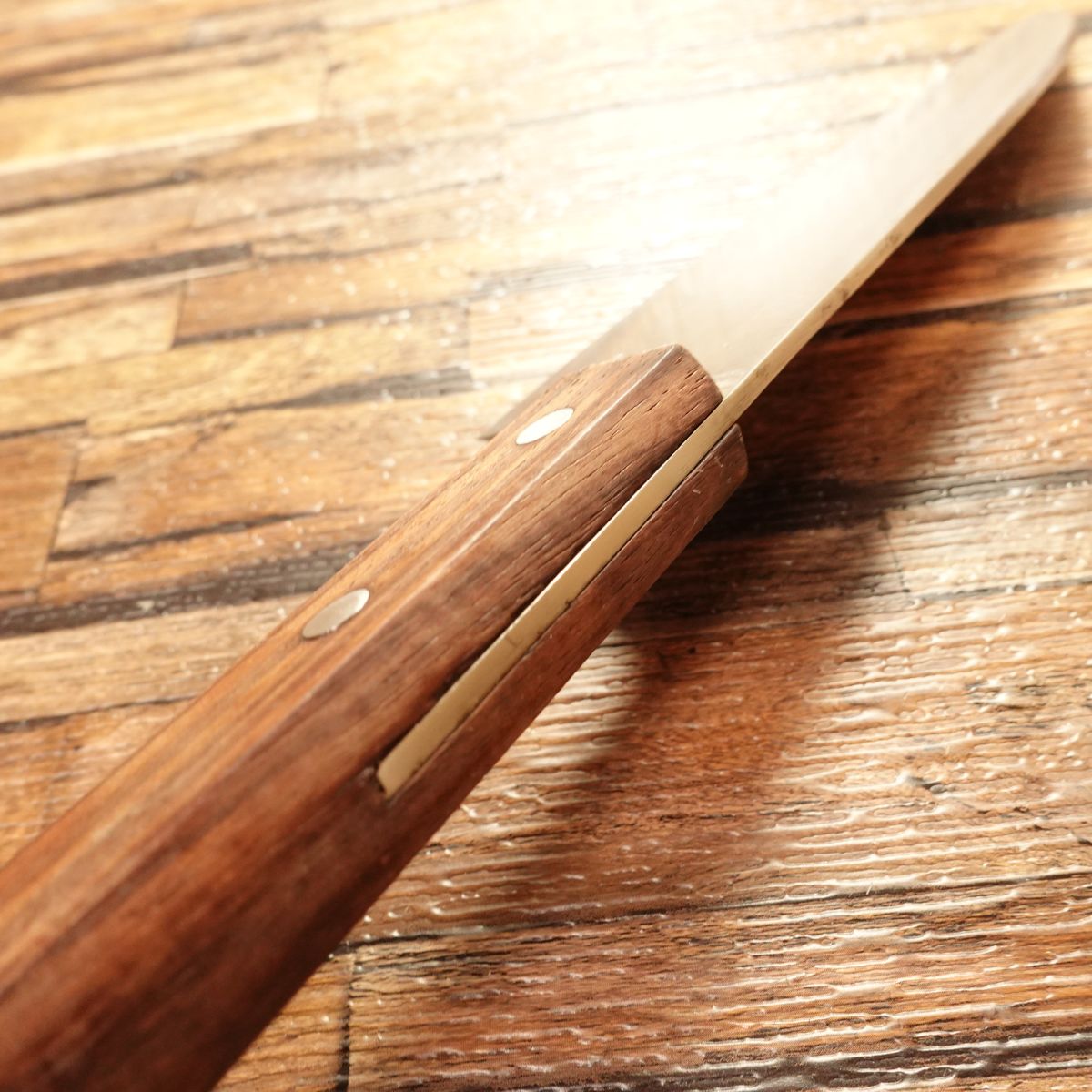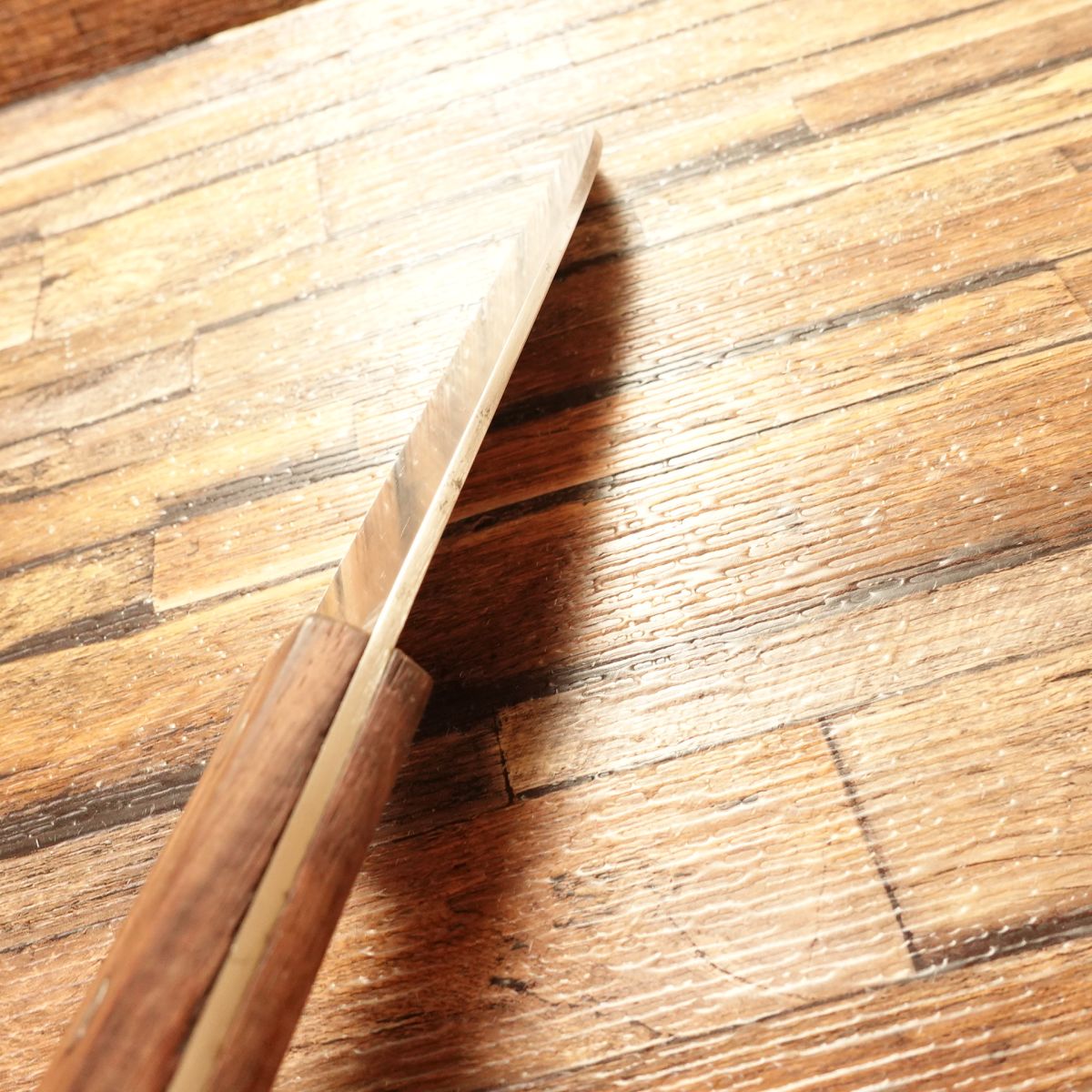 The Deba is a stout single-bevel knife for processing fish, with thickness and weight to handle bones. The blade uses Silver Paper No.1 (Gingami-1), a stainless-type steel developed to offer carbon-like bite with improved corrosion resistance. It is stainless single-bevel for easier maintenance.
