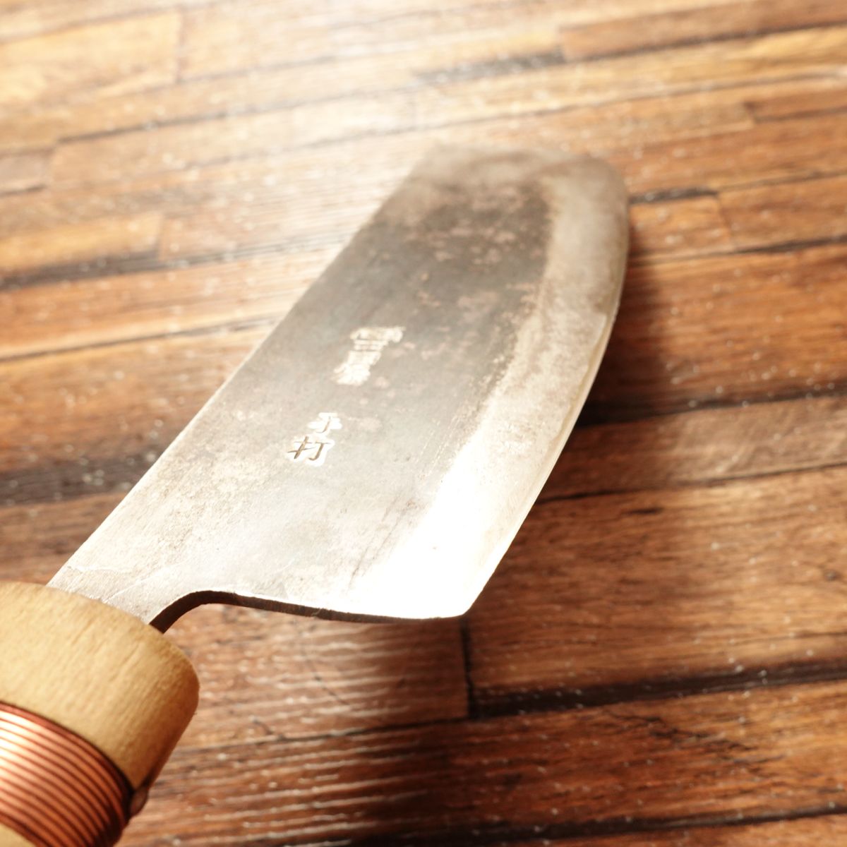 Rounded-profile Nakiri; hand-forged with a rustic kurouchi surface. Professionally sharpened for immediate use on arrival; please handle with care when unpacking. The price includes the sharpening fee.