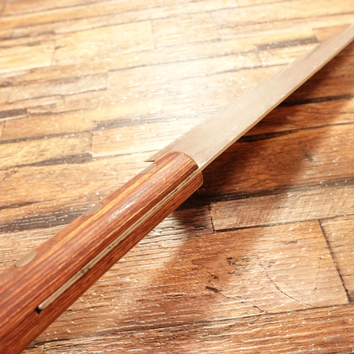 It bears the engravings “手打” (Hand-Forged), “保津川” (Hozugawa), and “別作” (Special Make). This Santoku is ideal for users who want a visually striking everyday knife that also performs well in routine prep work.
