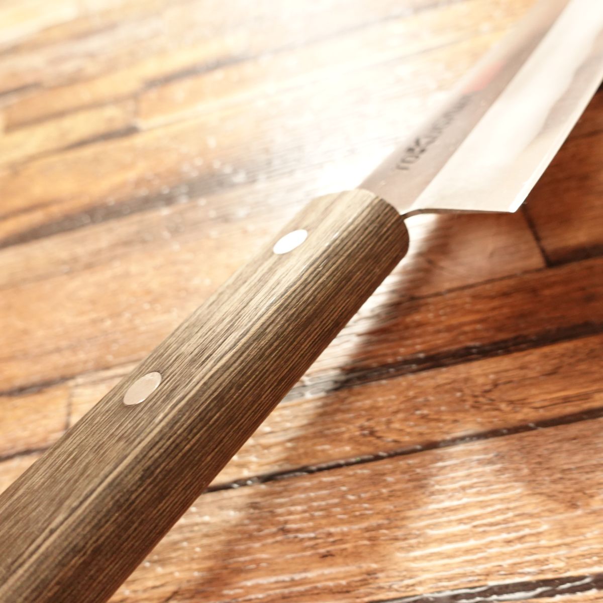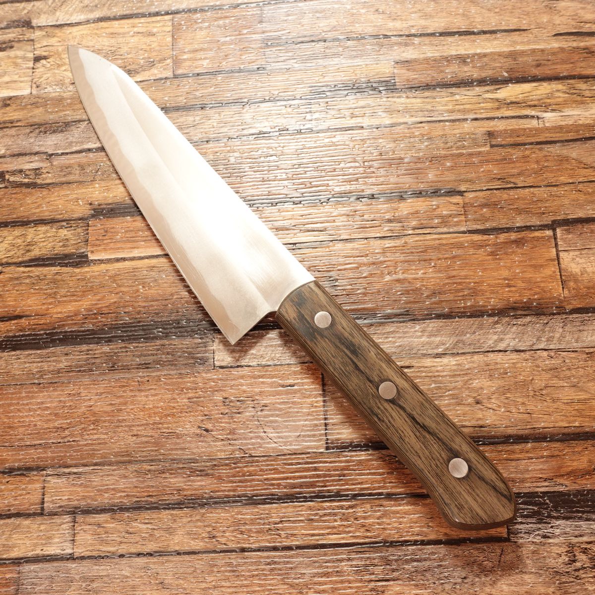 The Gyuto is a versatile Japanese chef’s knife popular for handling a variety of ingredients, including meat, fish, and vegetables. This knife is in excellent condition with minimal signs of use.