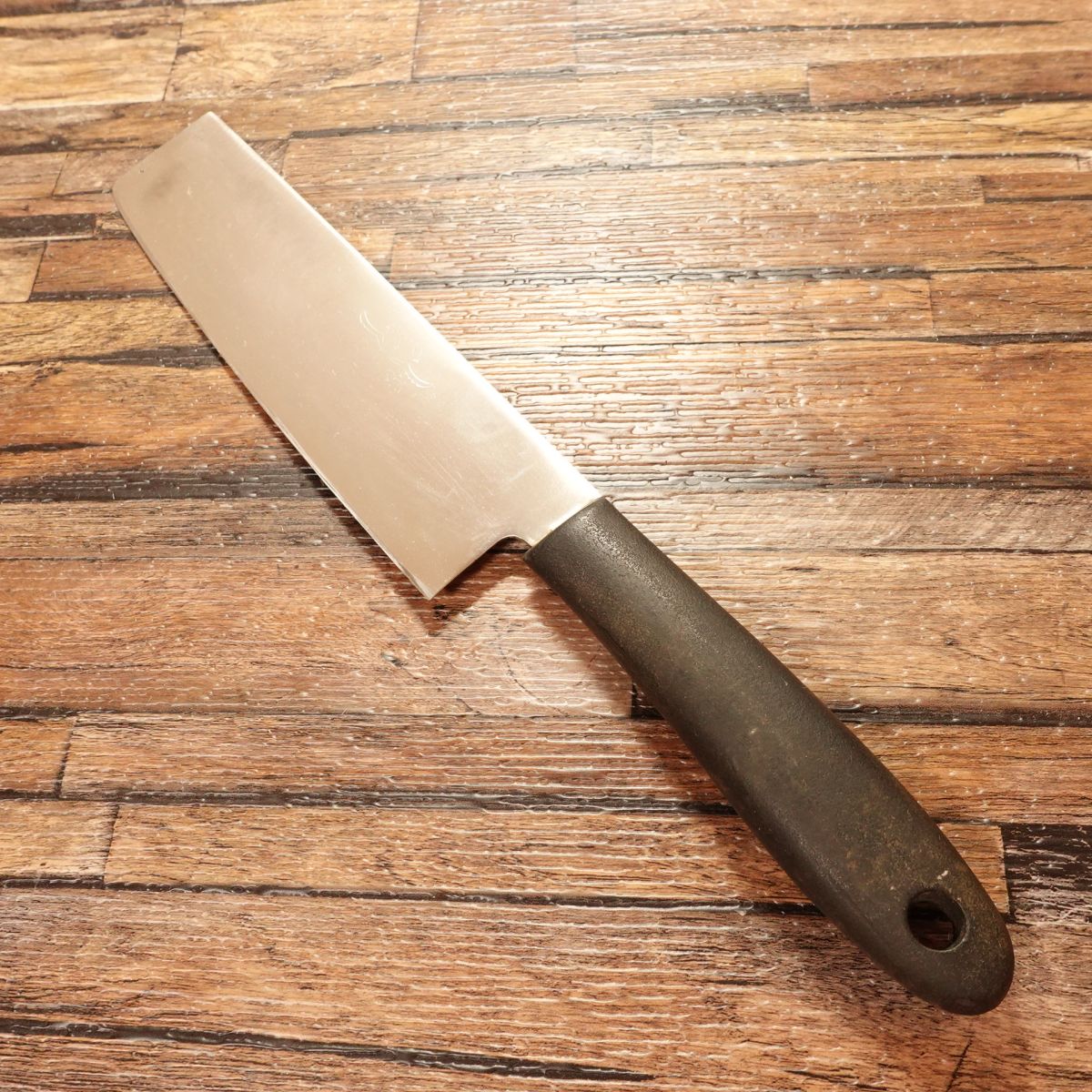 The Nakiri is a traditional Japanese vegetable knife with a straight-edged blade, ideal for chopping vegetables cleanly and precisely. This model has a simple, retro design. Made by Yoshida Metal Industry under the trusted YOSHIKIN brand, it assures quality and reliability.