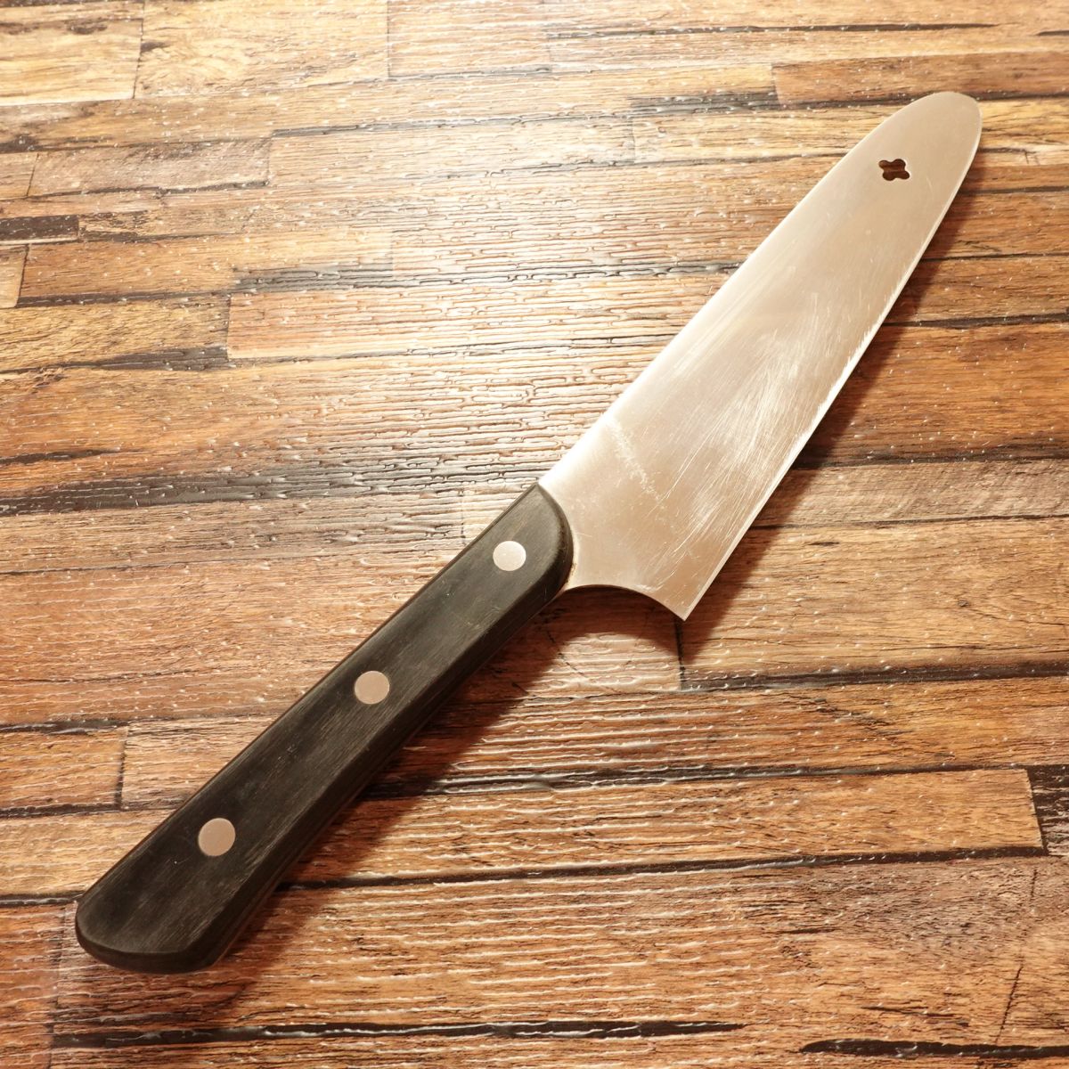 The Santoku is an all-purpose Japanese kitchen knife designed to handle a wide range of ingredients, including meat, fish, and vegetables.