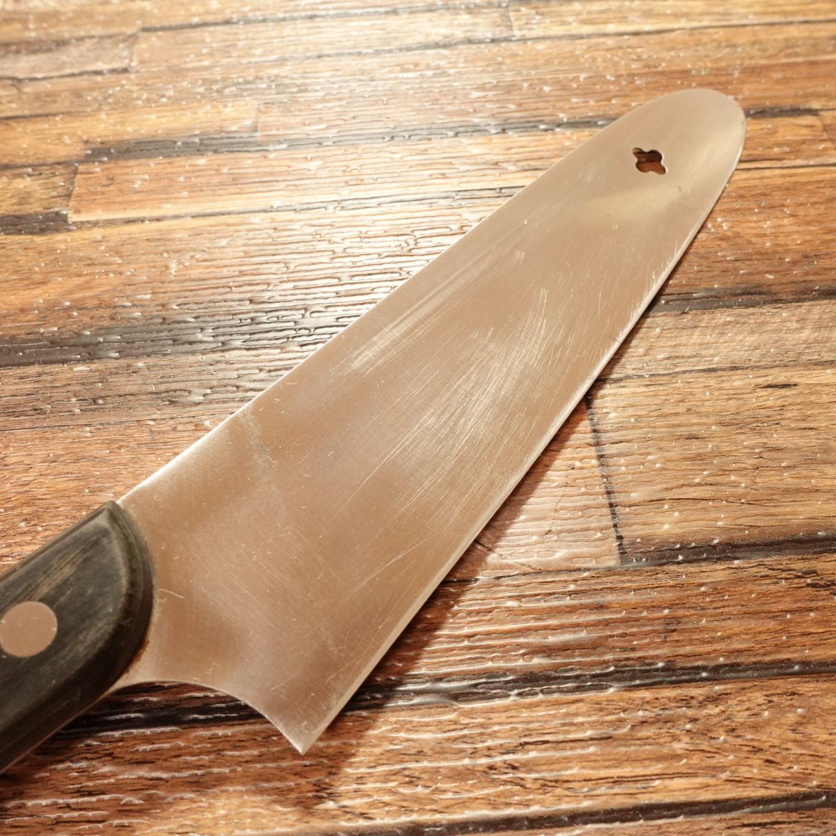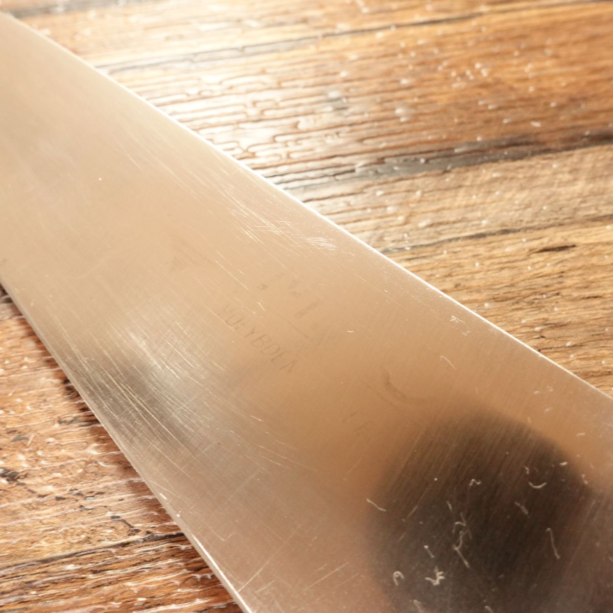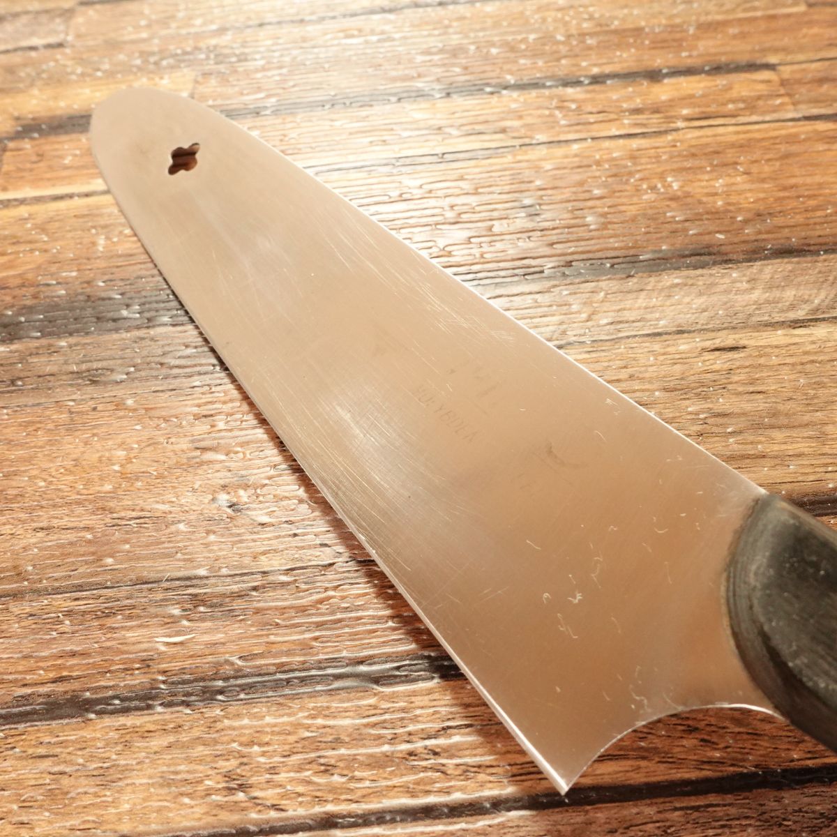 The engraving has faded slightly due to sharpening and maintenance, but overall the knife remains in good condition and ready for continued use.
