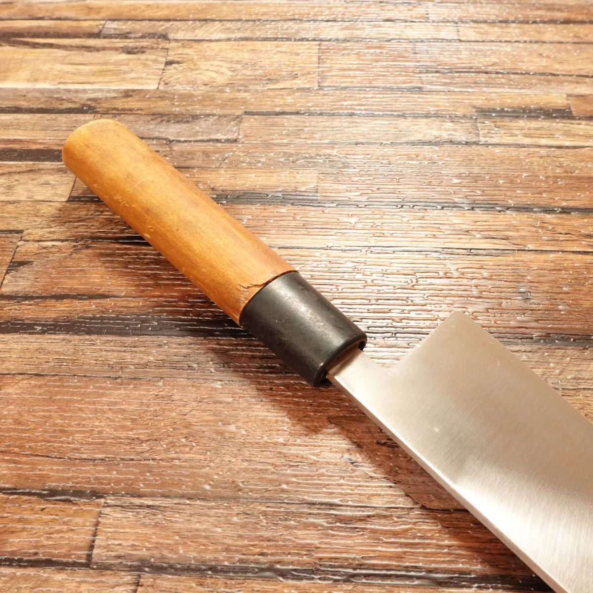 This knife is single-beveled and made from stainless steel, offering sharpness with low maintenance.