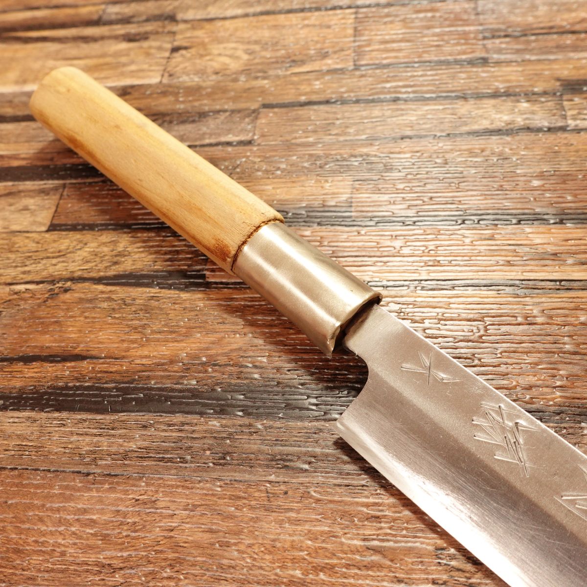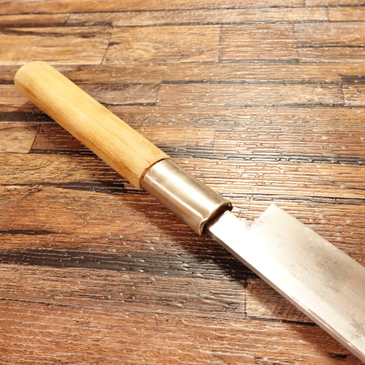 This knife is single-beveled and made from high-carbon steel, with exceptional sharpness.