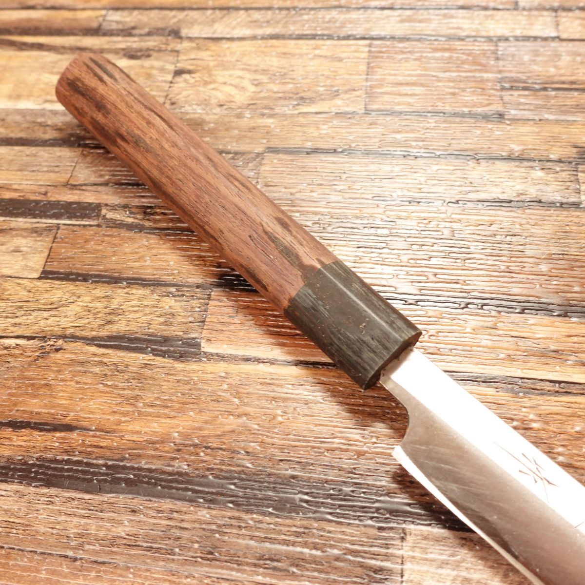 Made from single-beveled Aogami #2 high-carbon steel, this knife offers superb edge retention and a resilient, sharp blade. Like the previous model, it features a subtly curved handle alignment for better ergonomics during use.