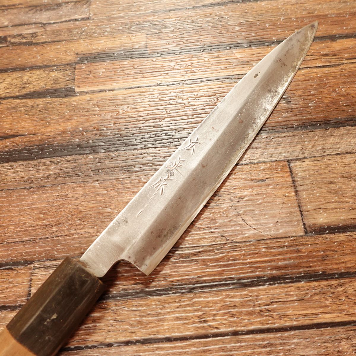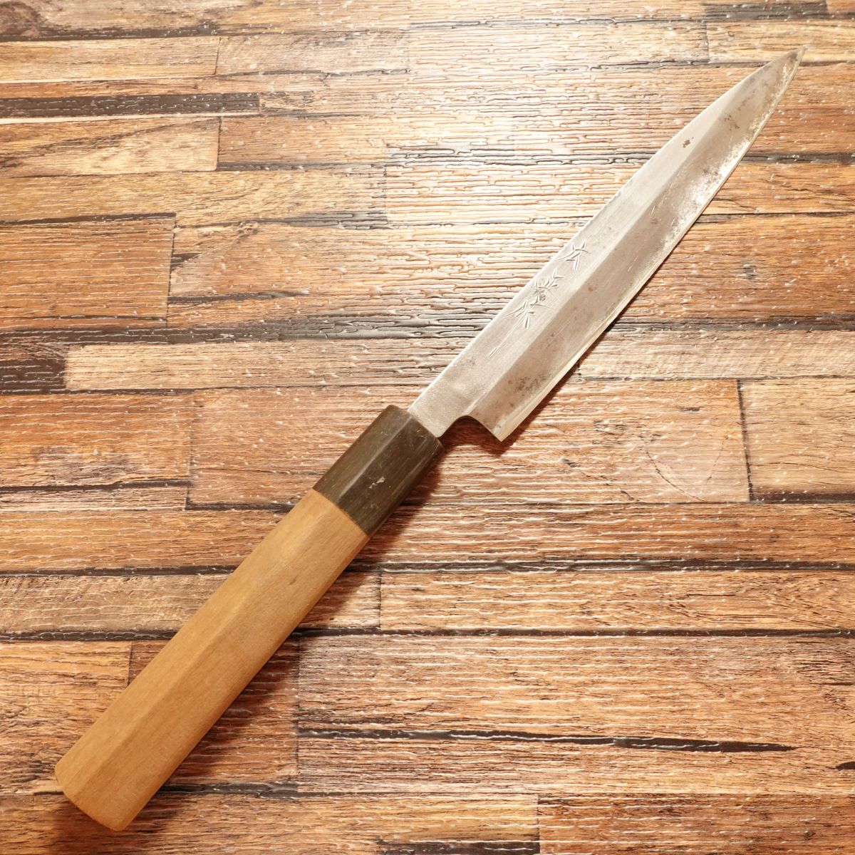 Hiromasa Yanagiba Knife, Sharpened, Mini Sashimi Knife, Japanese Petty Knife, Water Buffalo Handle, Handmade by Hiromasa, 180mm