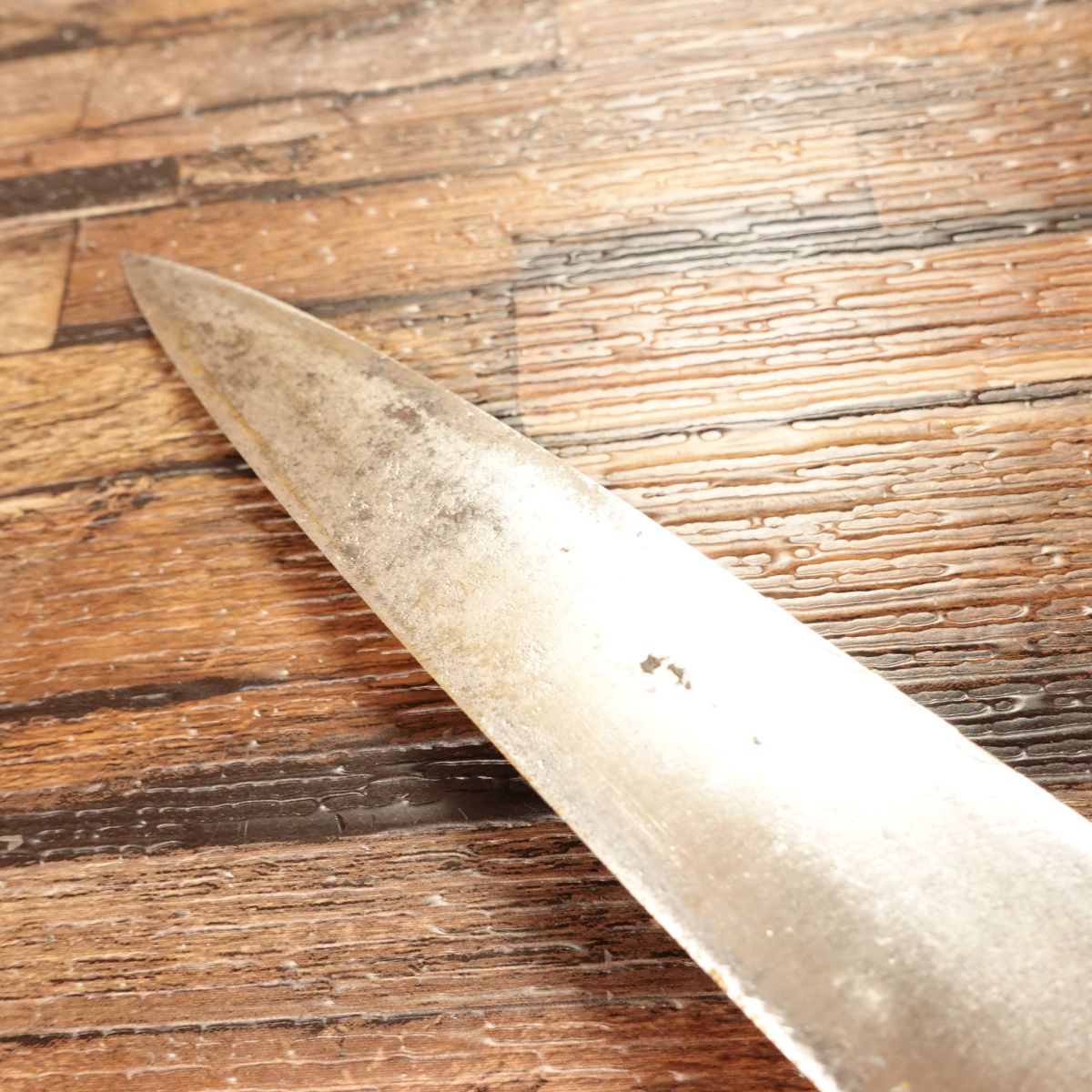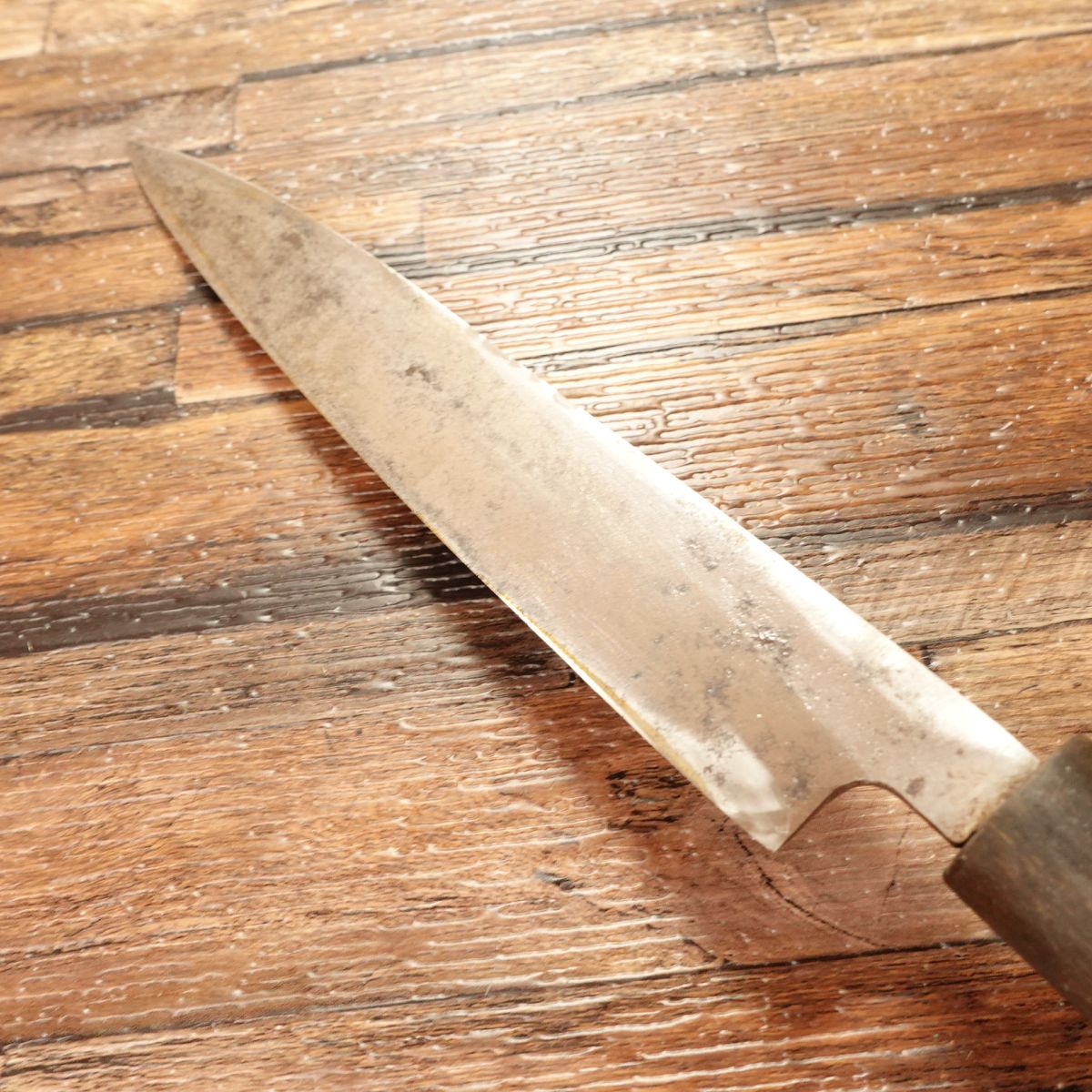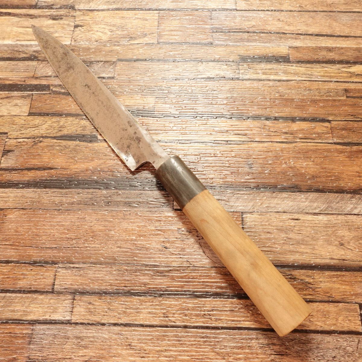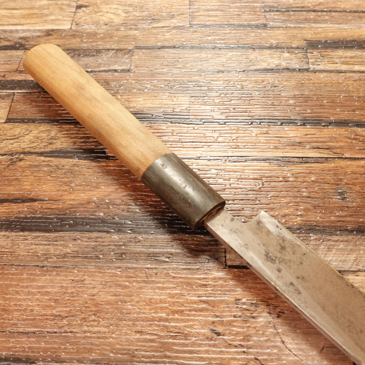 It has a buffalo horn handle and compact size, making it versatile for home use or as a larger Wa-Petty.