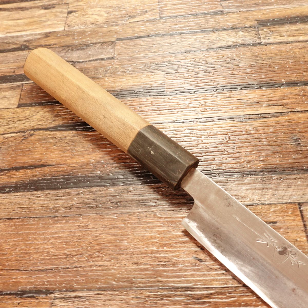 This knife is single-beveled and made from high-carbon steel, offering razor-sharp performance.