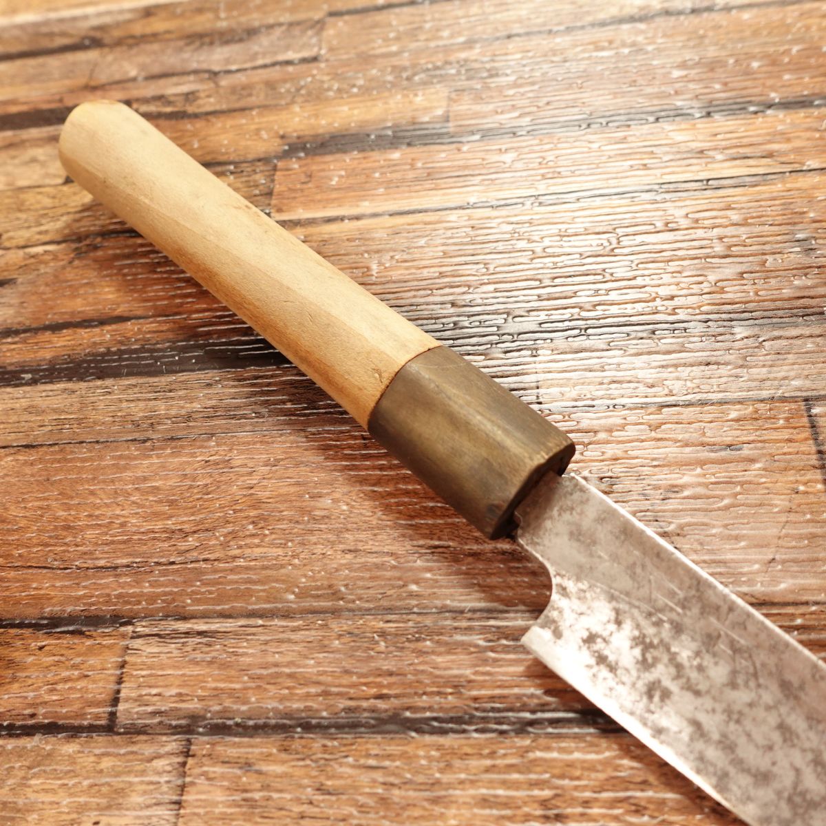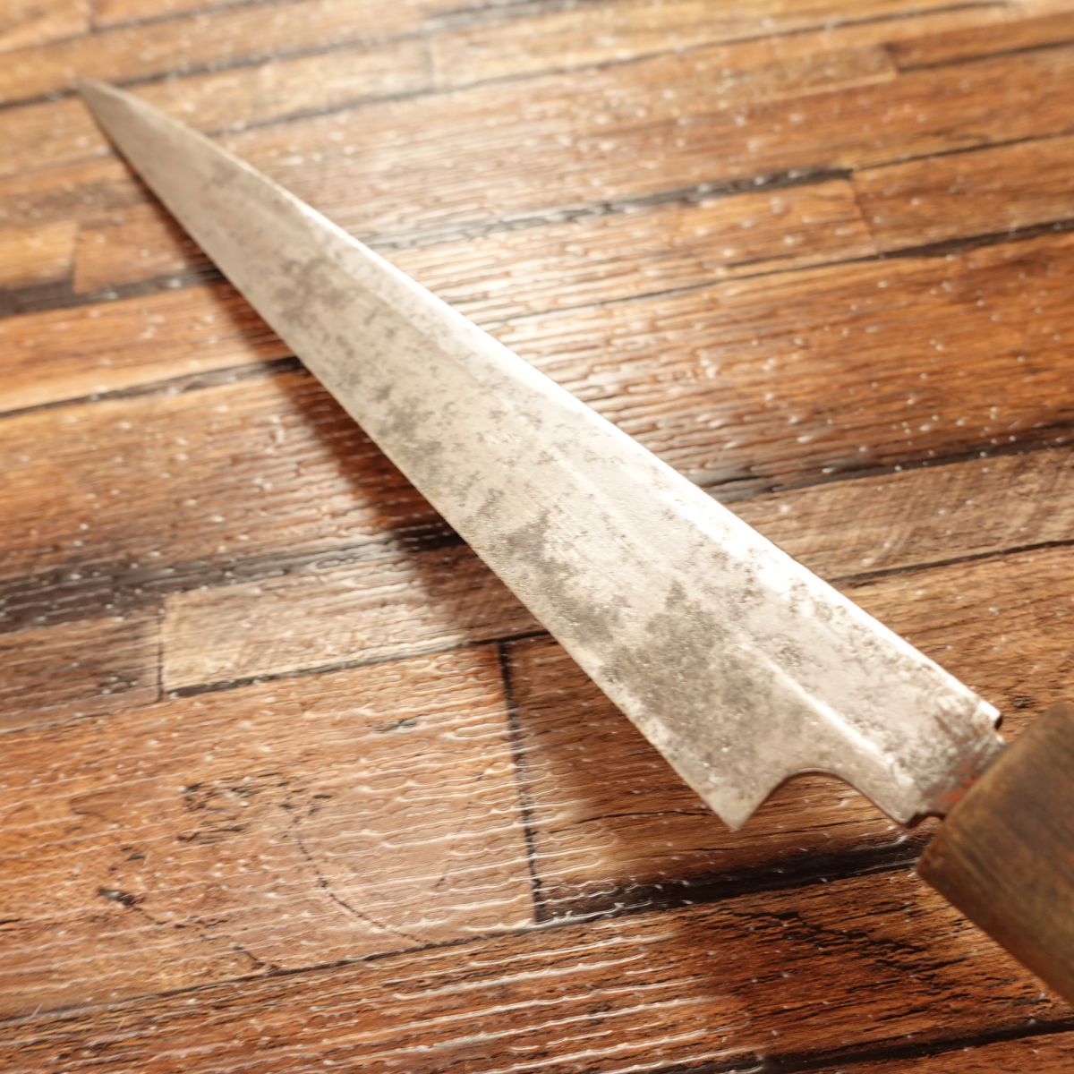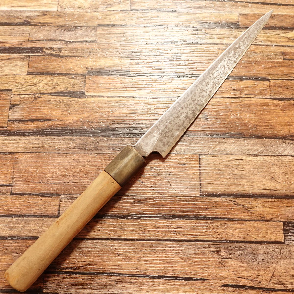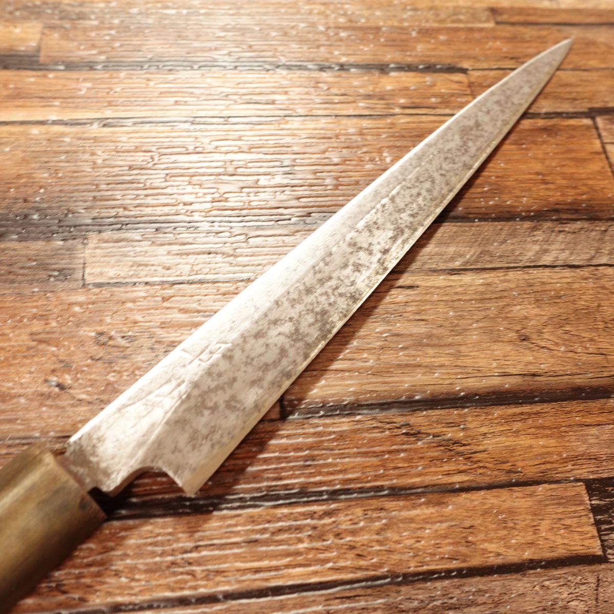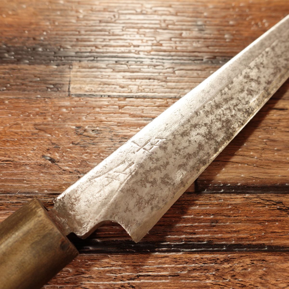 This Yanagiba appears to have been used by a craftsman for many years. Though shortened by maintenance, its 200mm blade is still highly suitable for home sashimi preparation. Originally a high-quality piece, it surpasses typical household sashimi knives in sharpness and craftsmanship.