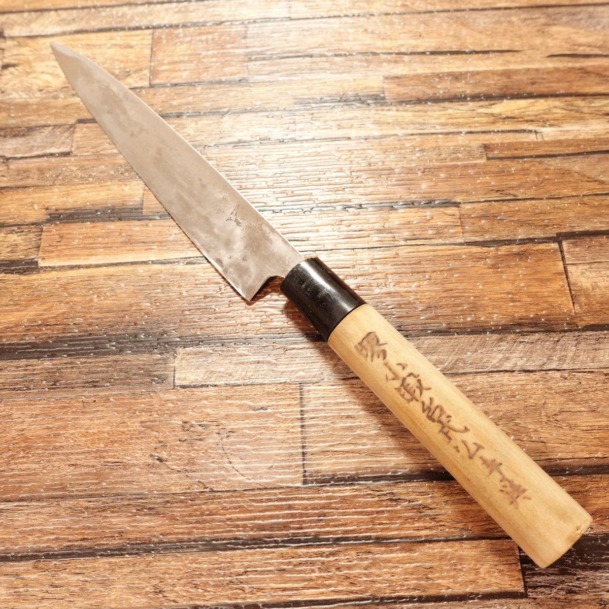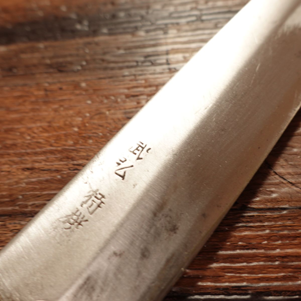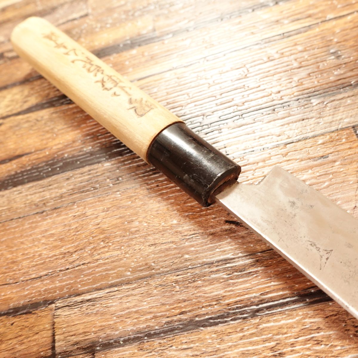 This knife is single-beveled and made from high-carbon steel for sharpness.