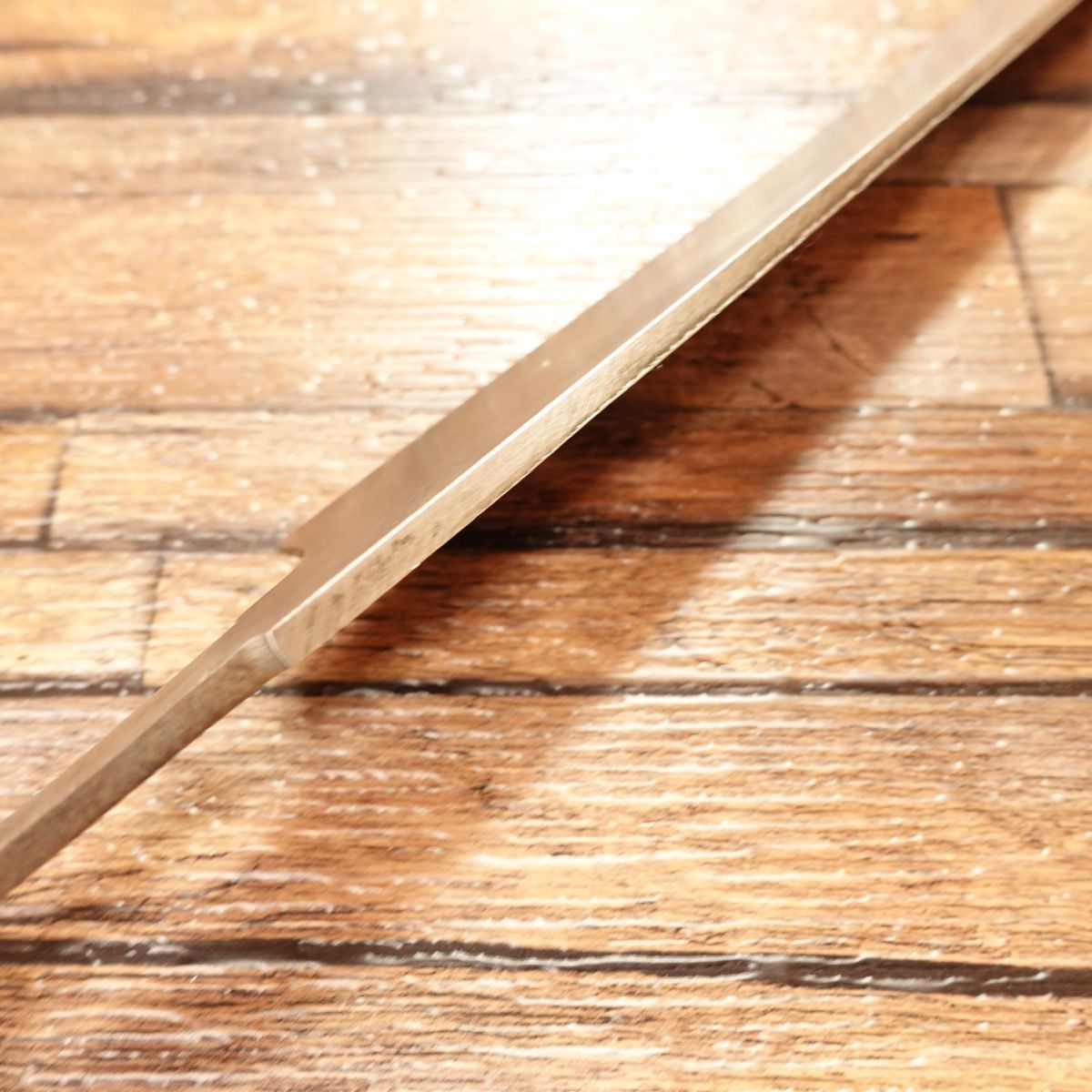 This high-carbon steel knife is a rare, unfinished Yanagiba knife that only requires sharpening to become a fully functional custom piece. It offers a unique opportunity for DIY enthusiasts to polish and mirror-finish the blade or maintain its current rugged look while refining the shinogi and edge. Customize the handle to create a one-of-a-kind knife.