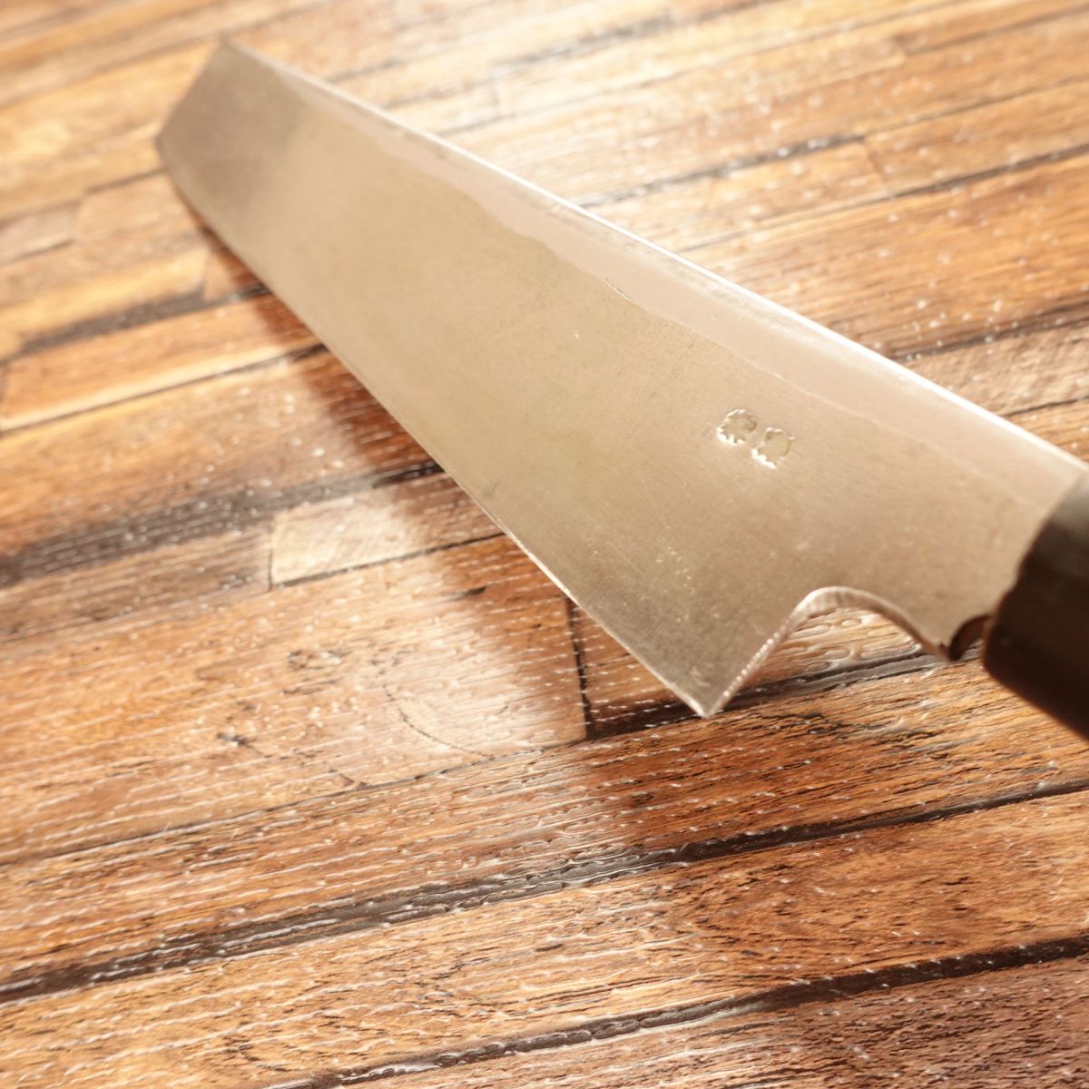 Crafted from high-carbon steel with a single bevel, it provides a razor-sharp edge.