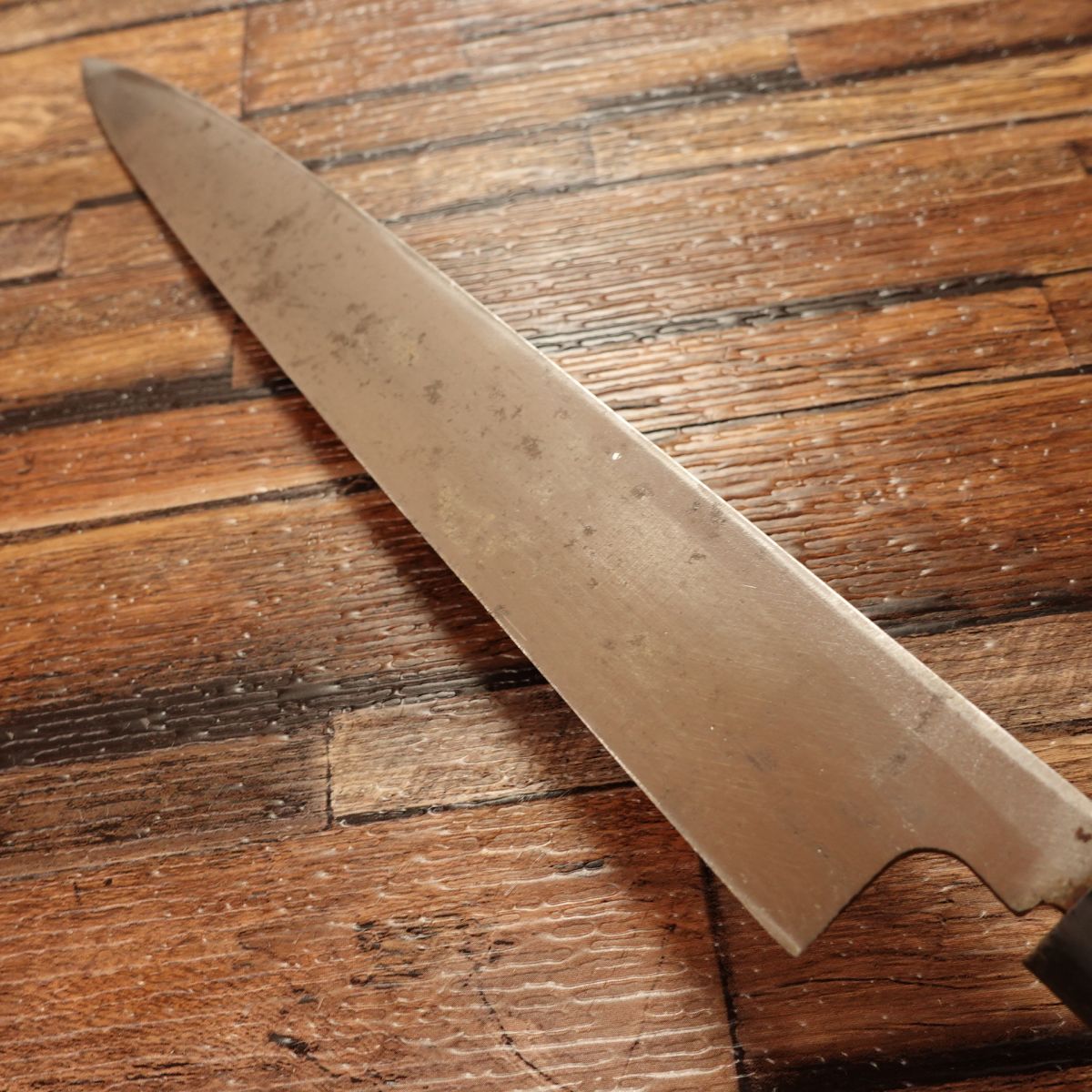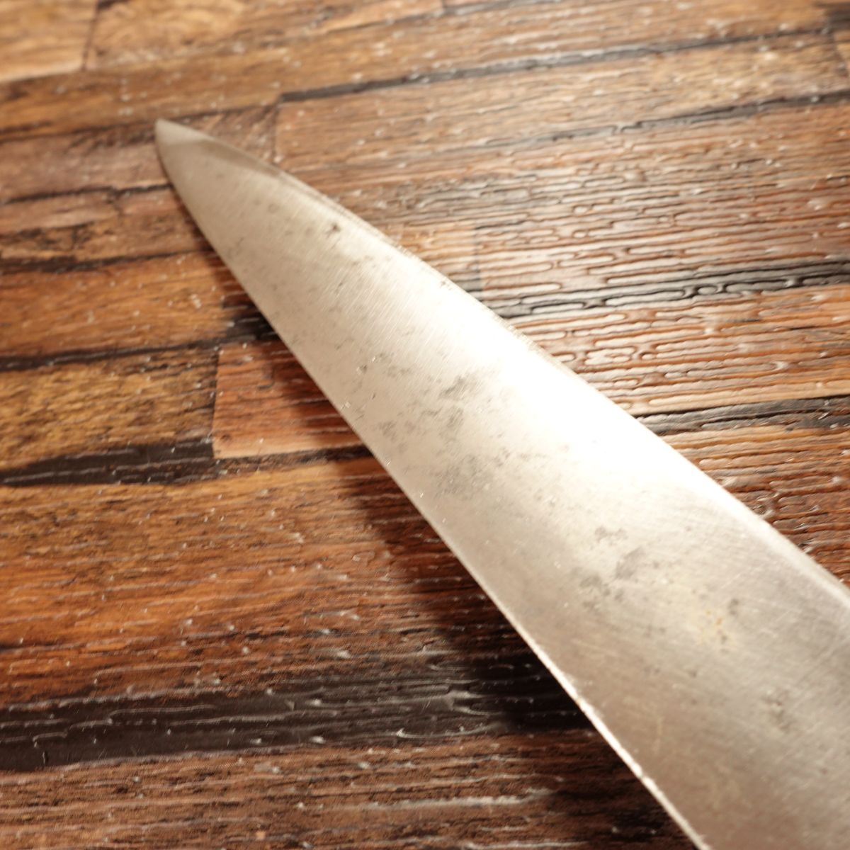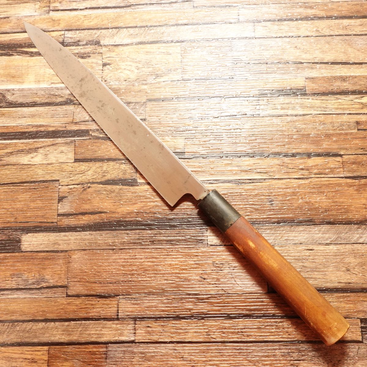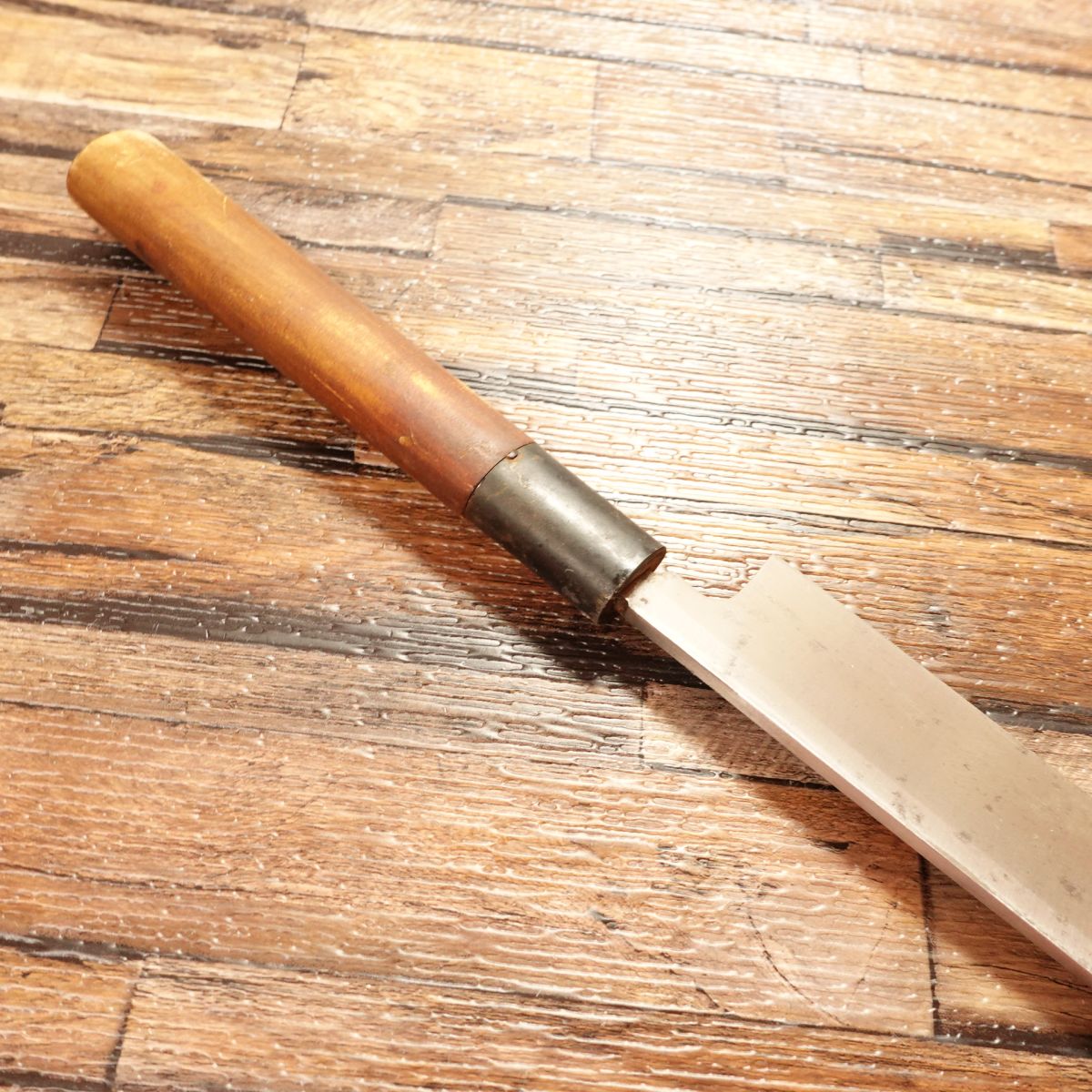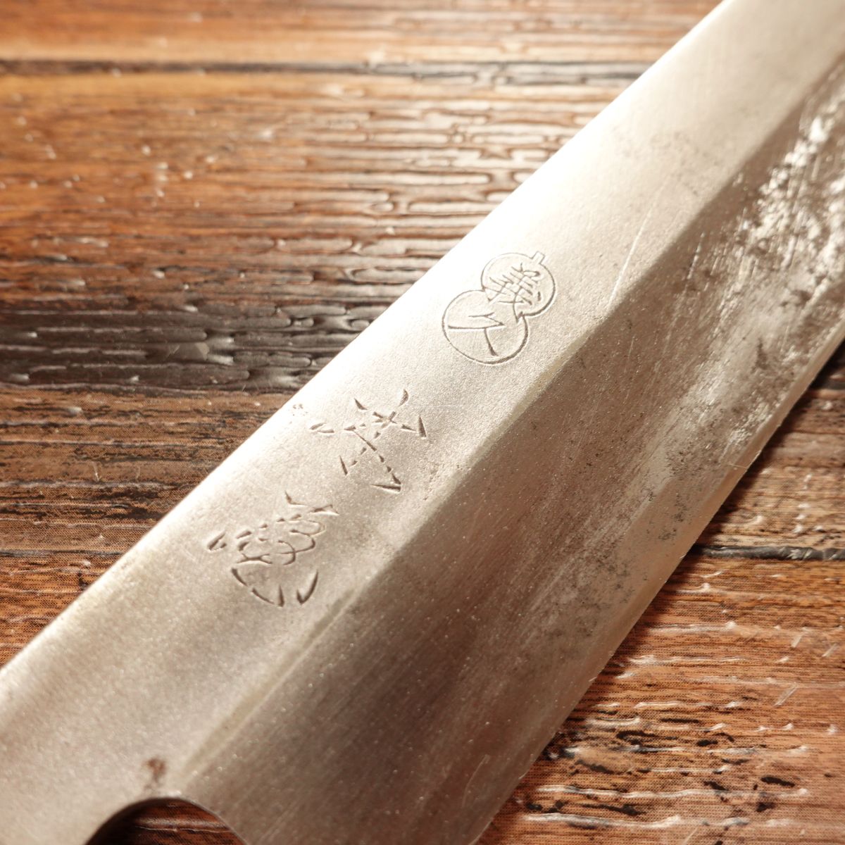 Made from single-beveled high-carbon steel, it offers razor-sharp performance. While some patina is present, the cutting edge remains bright and polished.