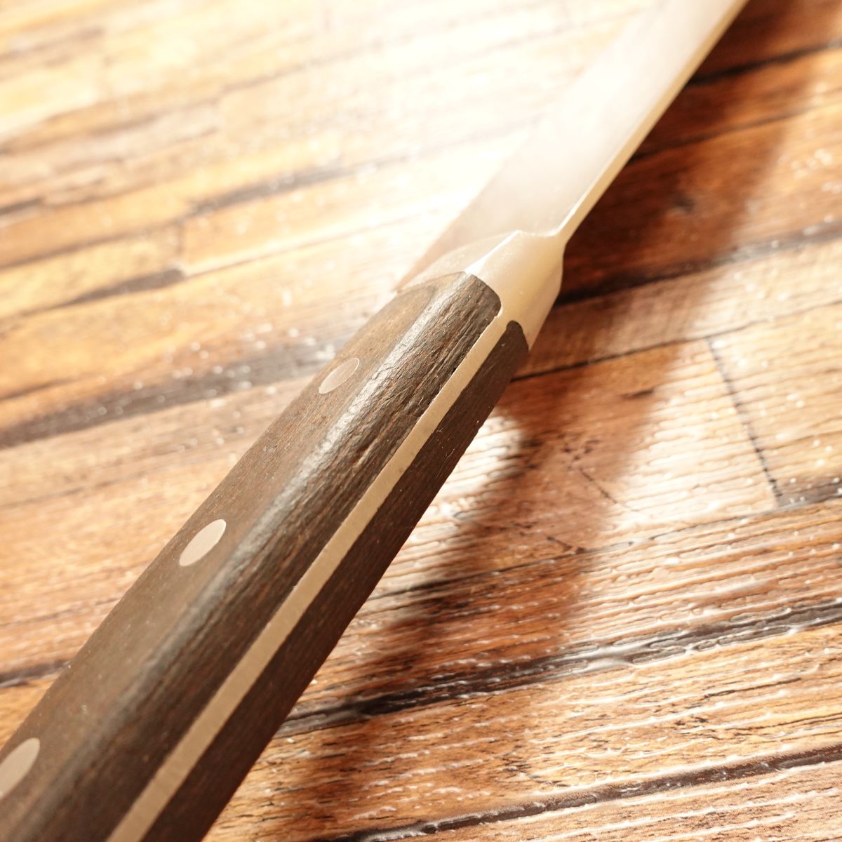 This gyuto shows minimal signs of use and is made from premium Swedish steel by UDDEHOLM. A highly versatile blade, it’s equally at home in professional and domestic kitchens.