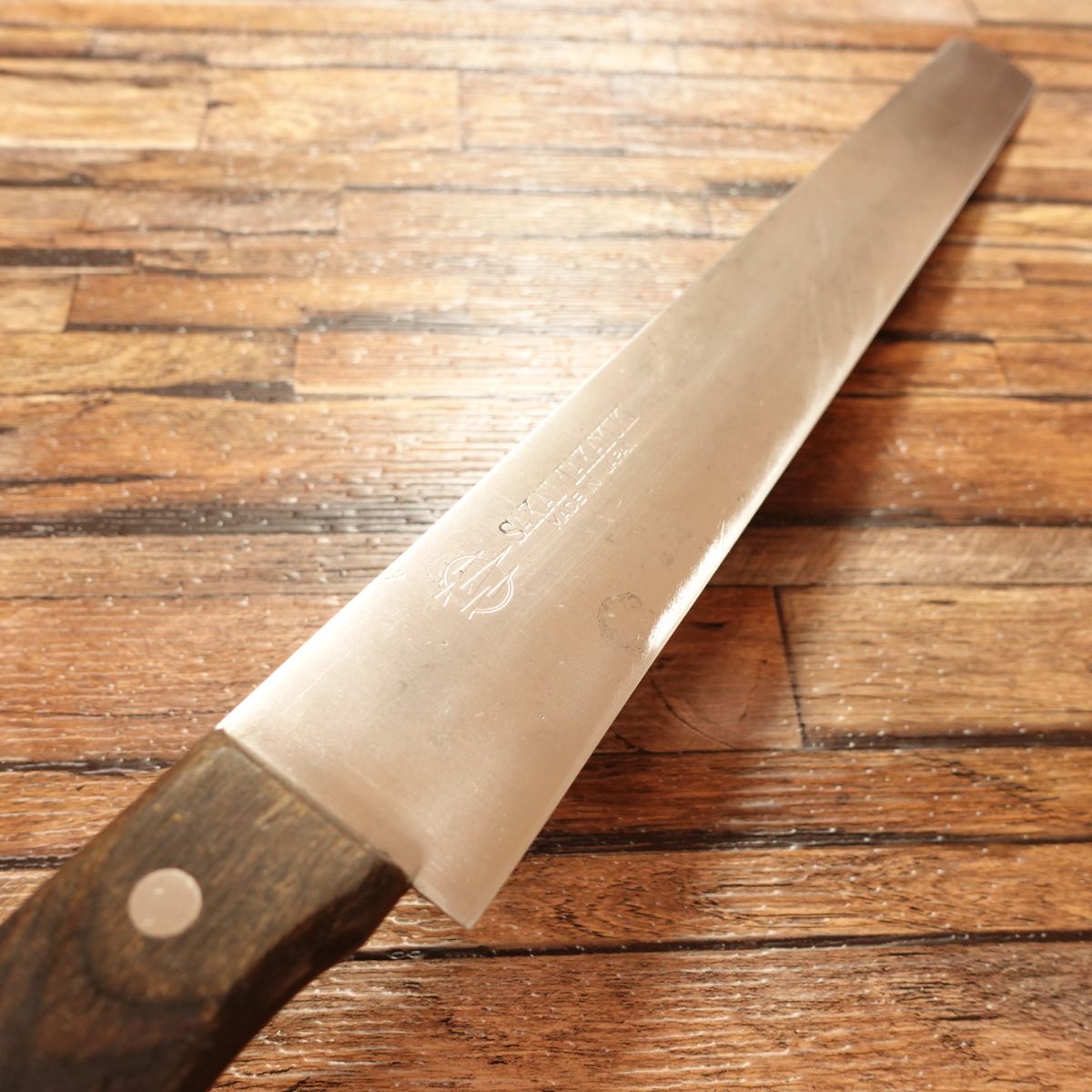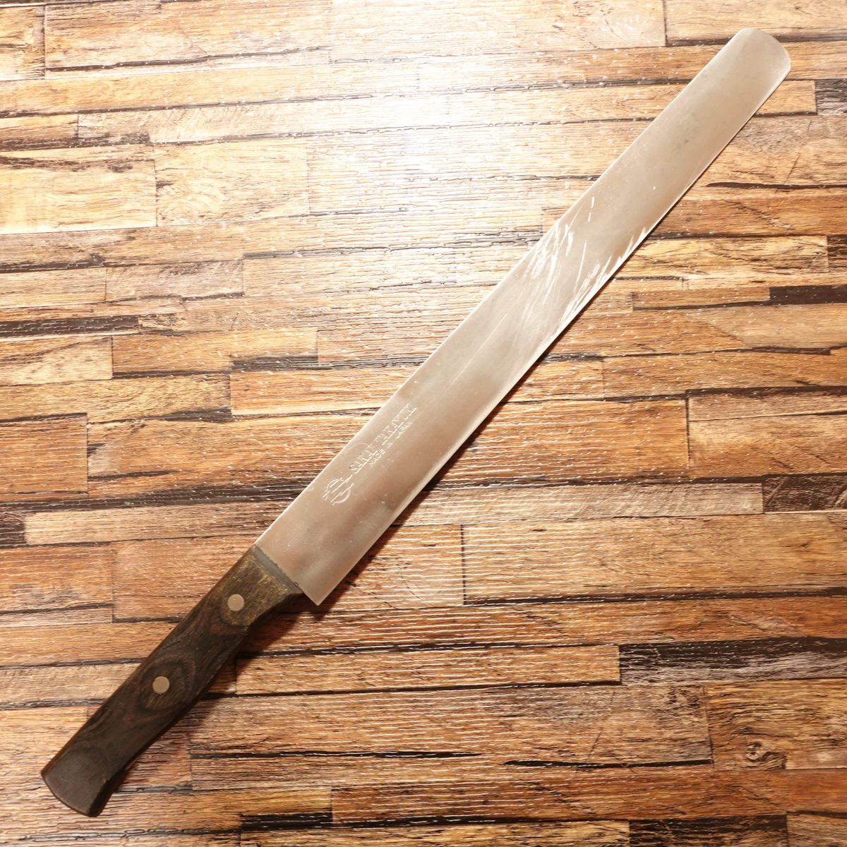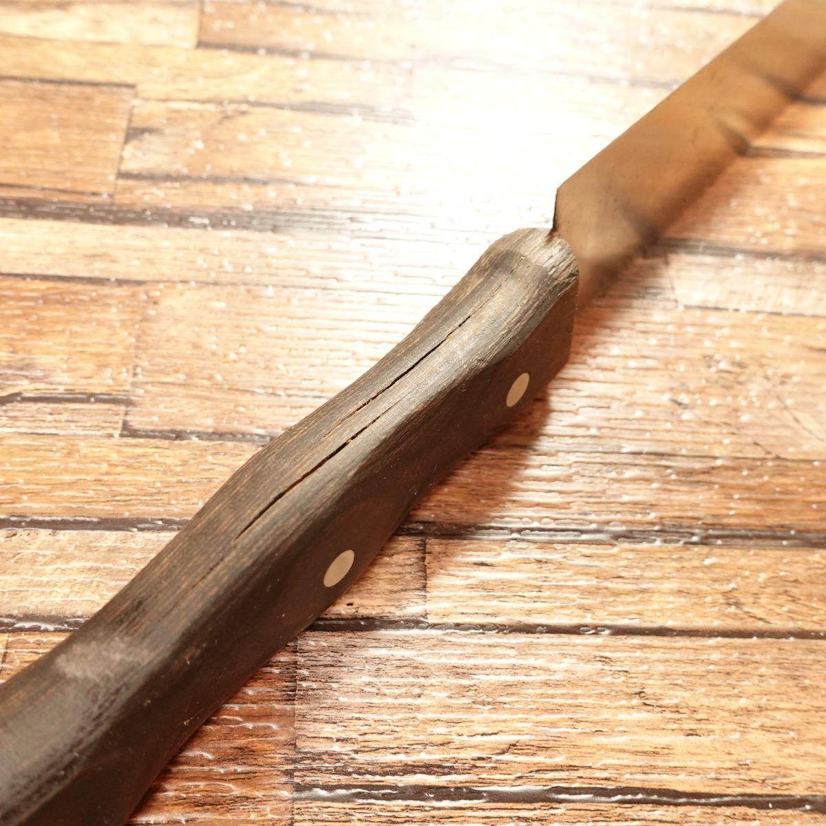 This straight-edge cake knife is designed for cutting soft sponge cakes like Castella without crushing them. The handle has some small cracks, which do not affect usability and are reflected in the price.
