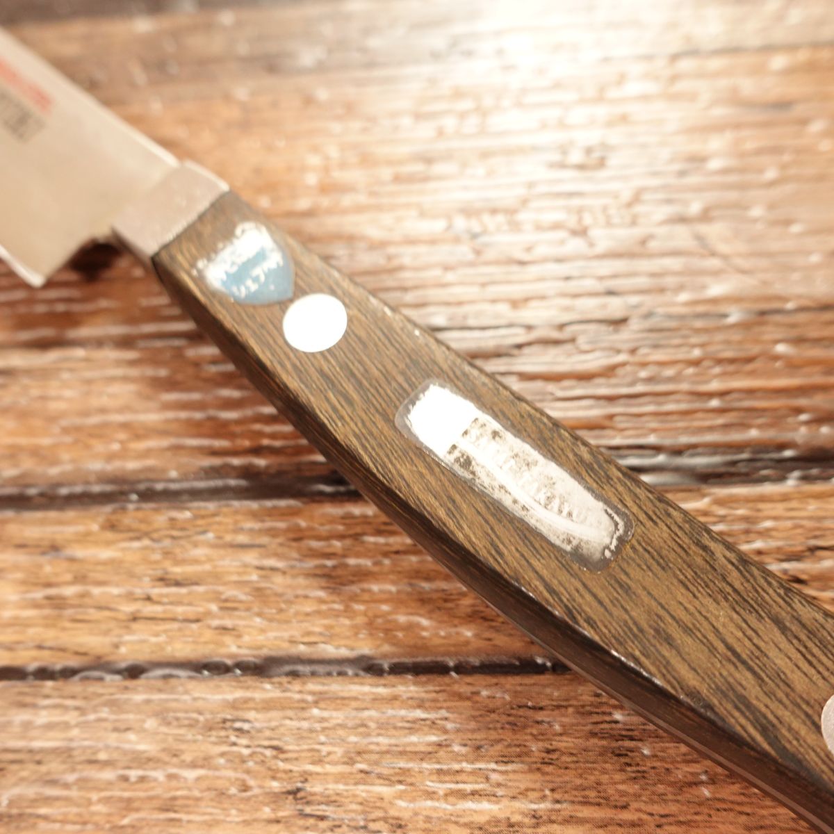This small petty knife still has its original sticker and shows minimal signs of use. Made with Swedish steel by UDDEHOLM, it's perfect for detailed prep work with fruits and vegetables.