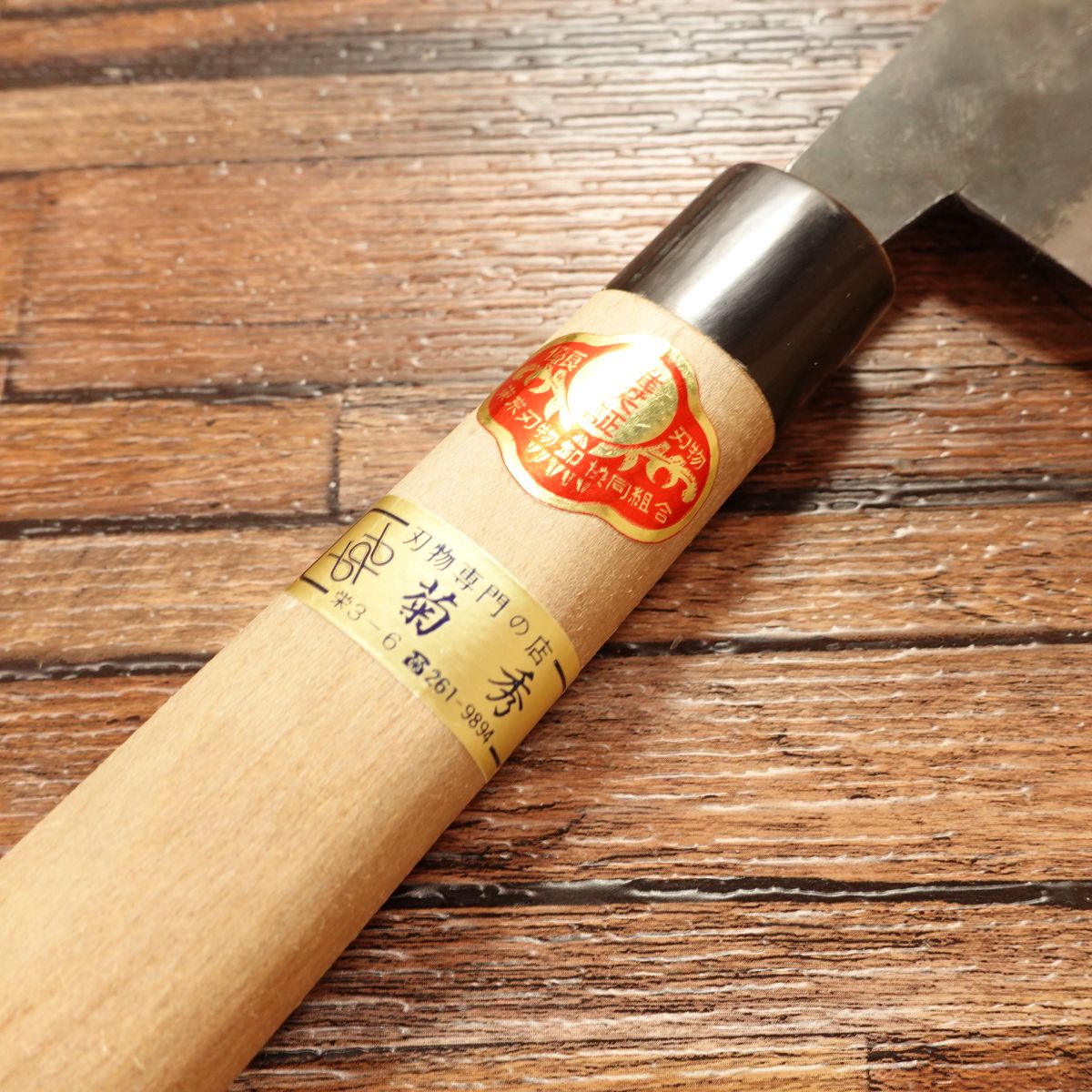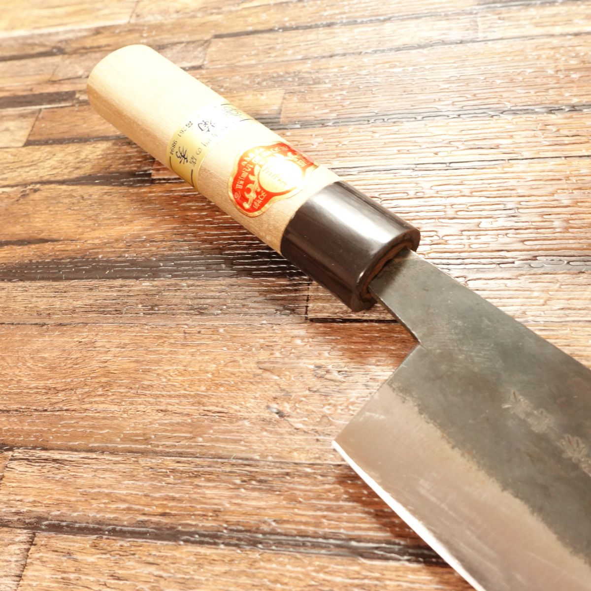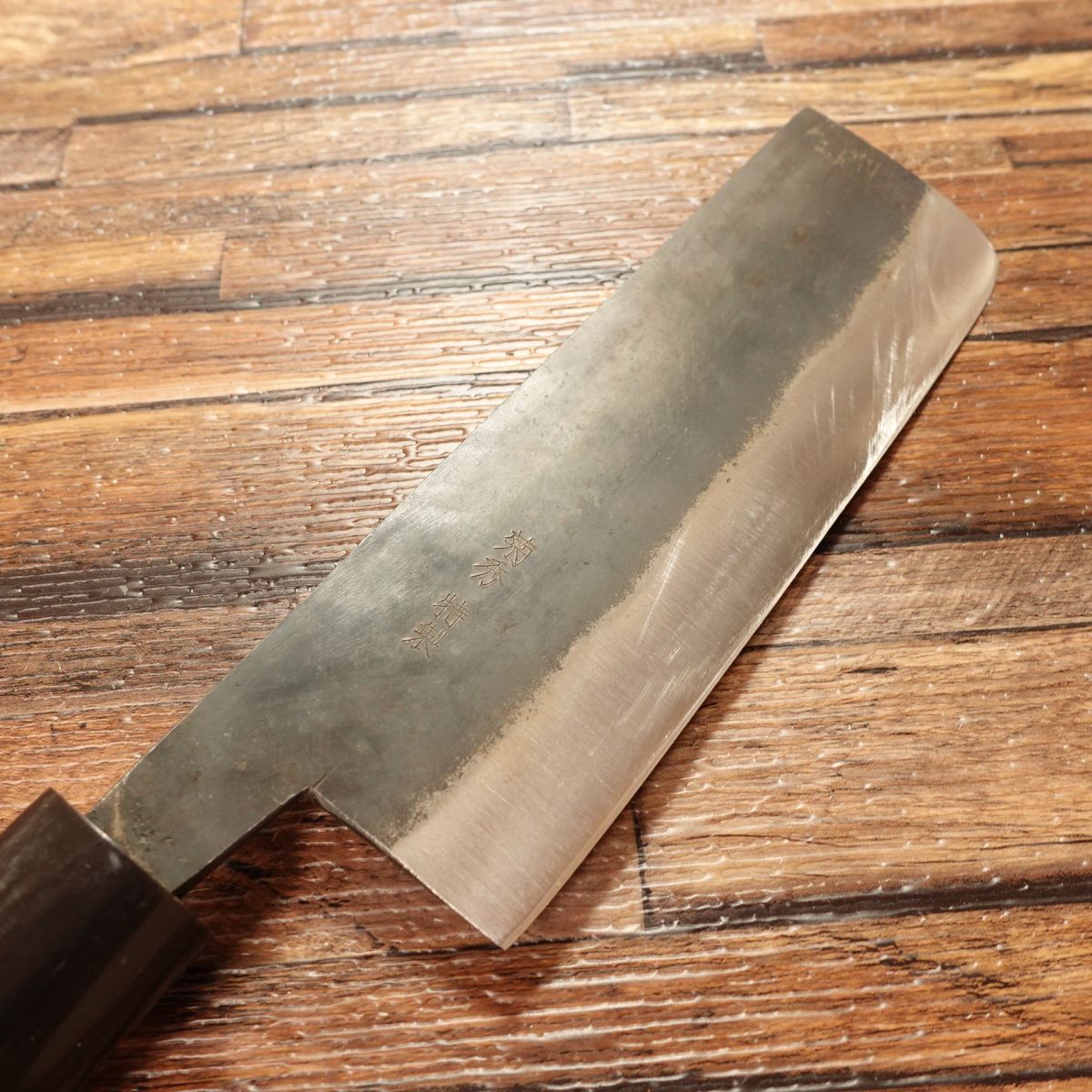 Kikuhide Nakiri Knife, Sharpened, Water Buffalo Handle, Kuro-Uchi Finish, Thin Blade, Unused, Boxed, 145mm