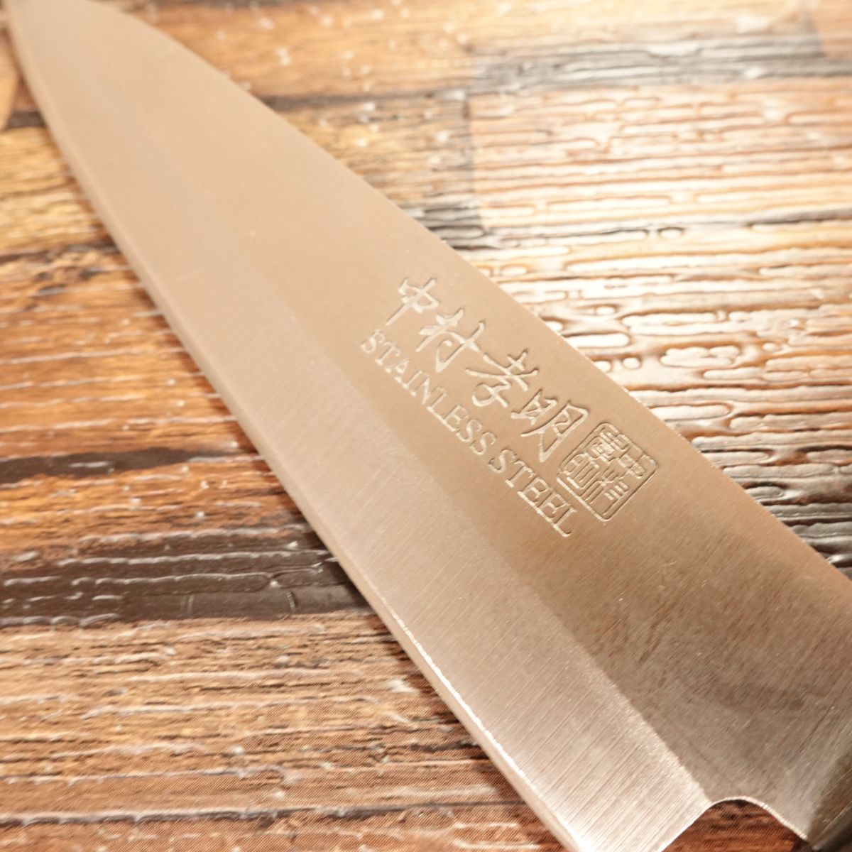 It features engravings and marks "中村孝明" (Koumei Nakamura) and "Stainless steel".