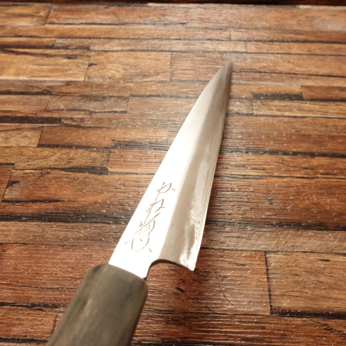 This knife is single-beveled and made from high-carbon steel, offering fine, precise cuts.