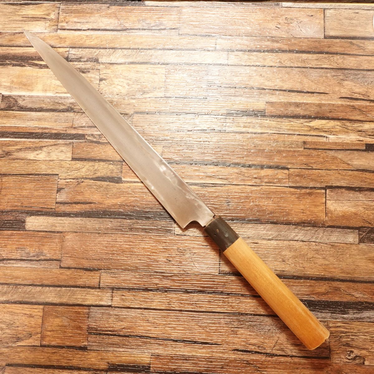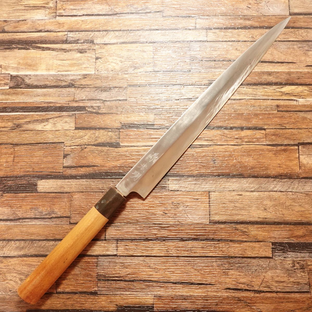 Minamoto Hiroaki Yanagiba Knife, Sharpened, Water Buffalo Handle, Sashimi Knife, Carbon Steel, Light Use, 300mm