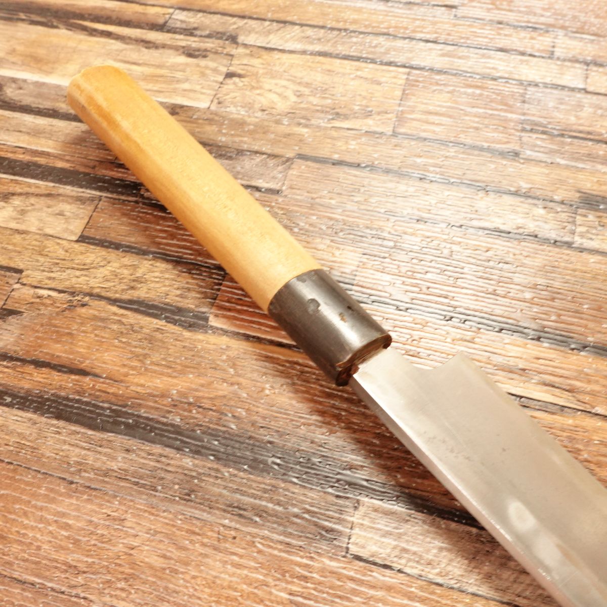 This knife is single-beveled and made from high-carbon steel, providing exceptional sharpness.