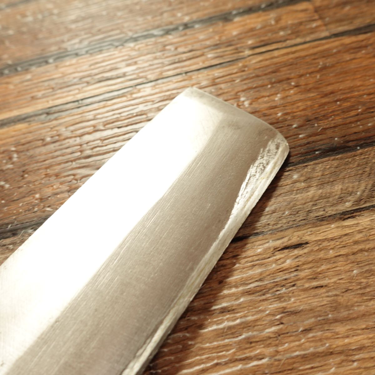 This knife is made of hagane (high-carbon steel) with a single bevel, offering a very sharp cutting feel.