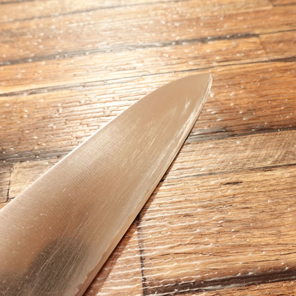 A Western-style gyuto with a PM high-speed steel core (powder metallurgy) for excellent edge retention and toughness, clad for easier maintenance.