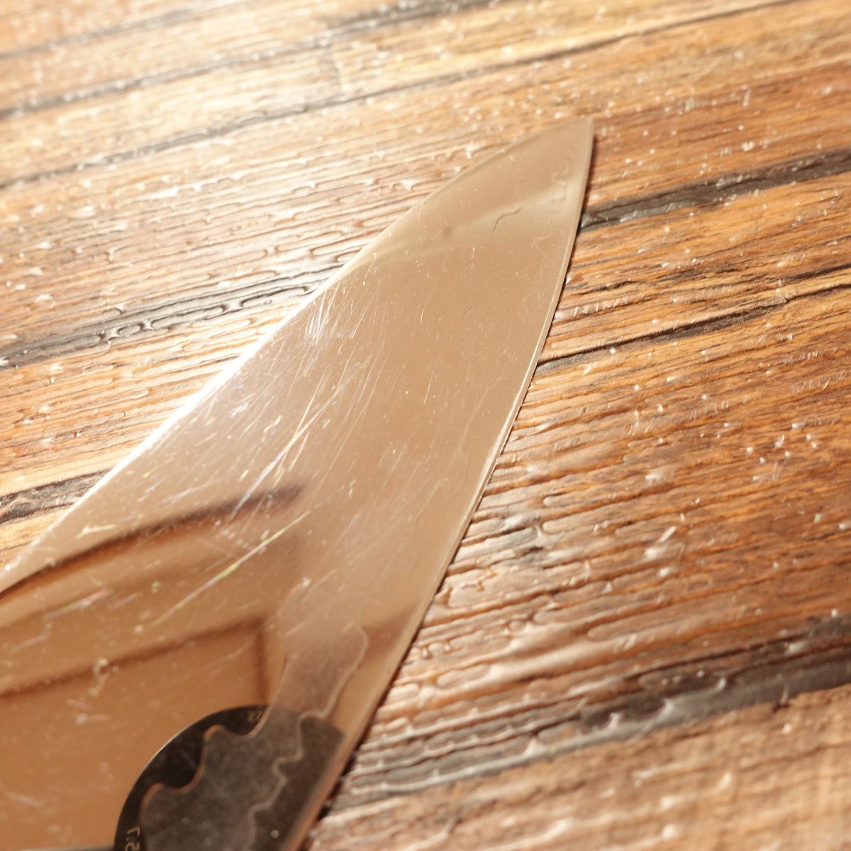 This is a Shun SORA Gyuto knife from KAI, a versatile Western-style chef’s knife. It uses a VG10 composite material, providing excellent durability and sharpness. Backed by KAI’s quality, it is suitable for everything from everyday home cooking to professional use. The blade was originally finished with a mirror polish; while there are small scratches from normal use, the mirror surface remains in attractive condition.