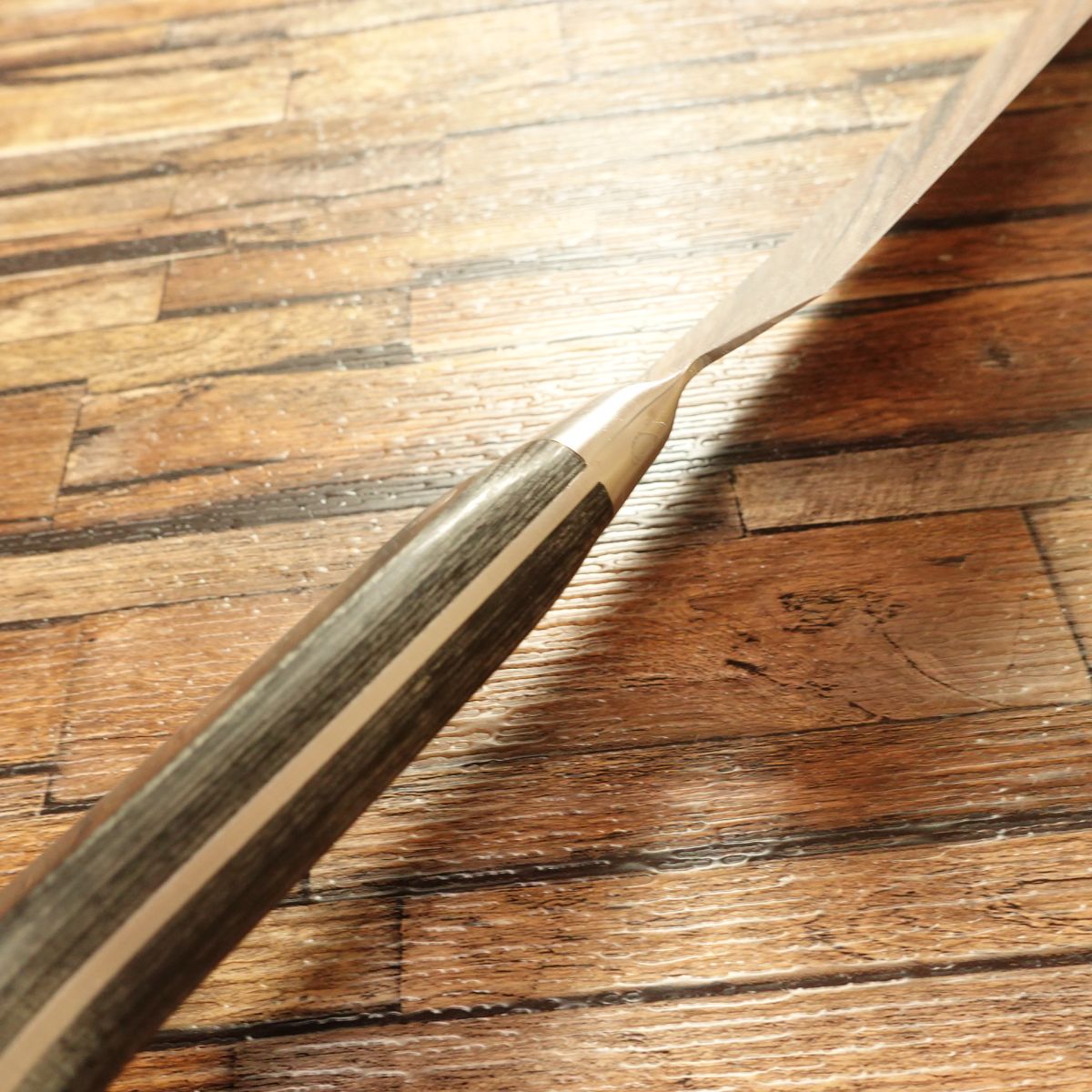 This knife is double-beveled with a warikomi (clad) construction, and it shows minimal signs of use. With Swedish steel as the core, it offers a keen cutting feel while remaining relatively easy to care for.