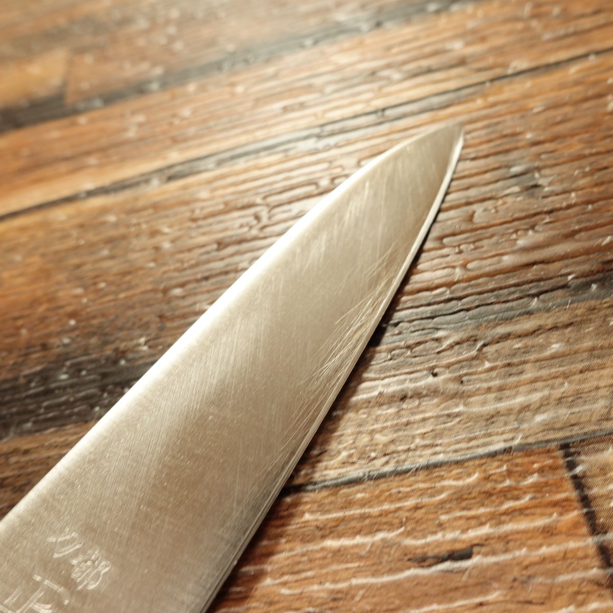 This knife is double-beveled and made of stainless steel, so it is rust-resistant and easy to maintain. It is a compact stainless petty knife. Many professionals also choose a petty around this size for garnish work and detailed carving.