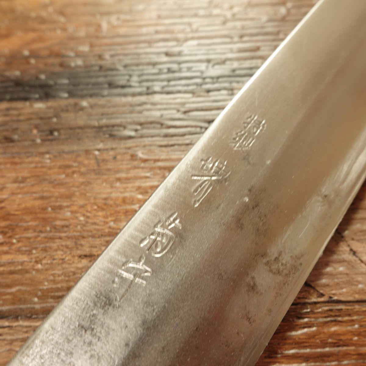 This knife is single-beveled and made of hagane (high-carbon steel). It appears to have been used with careful maintenance, and the blade does not show much wear.