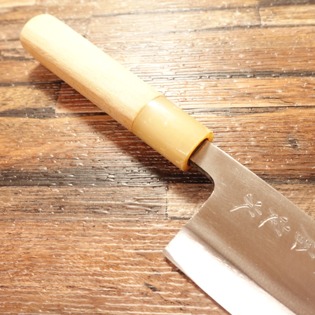 This knife is single-beveled and made of hagane (high-carbon steel). It is in very clean condition with hardly any sign of use, though it likely had some storage time.