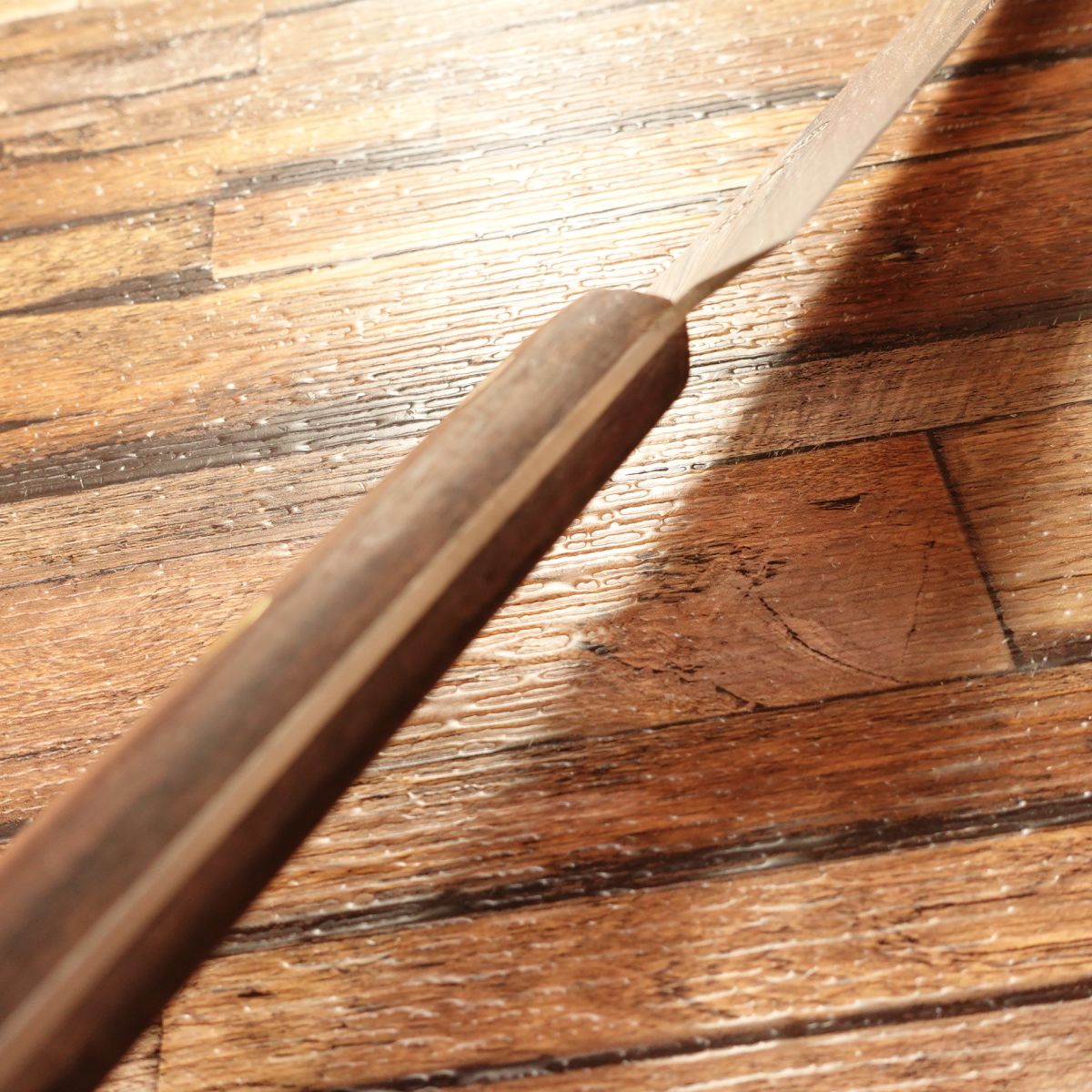 The Sujihiki is a slim knife designed for trimming sinew and slicing meat cleanly. It had been sharpened with a single-bevel style edge, and it has been finished in the same manner.