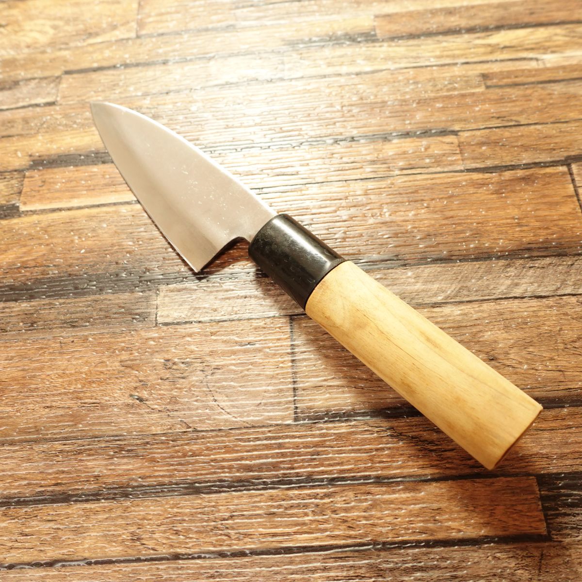 A double-bevel aji-kiri is approachable even for beginners—easy to steer left or right, and great for quick sashimi-style portions from small fish after cleanup.