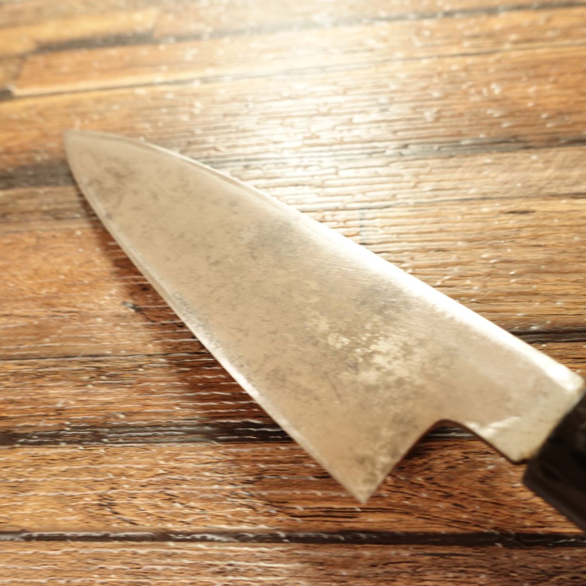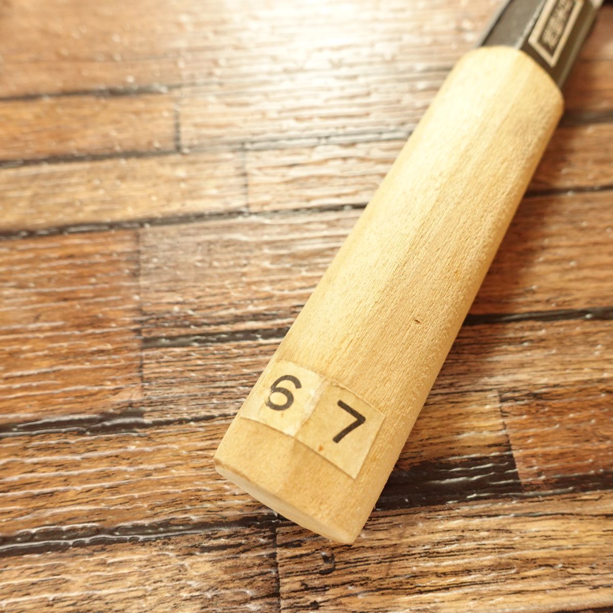 This knife is single-beveled and made of hagane (high-carbon steel). With the sticker still remaining, it appears to have been stored with little use. It is in very clean condition.