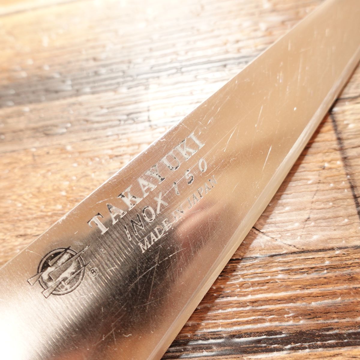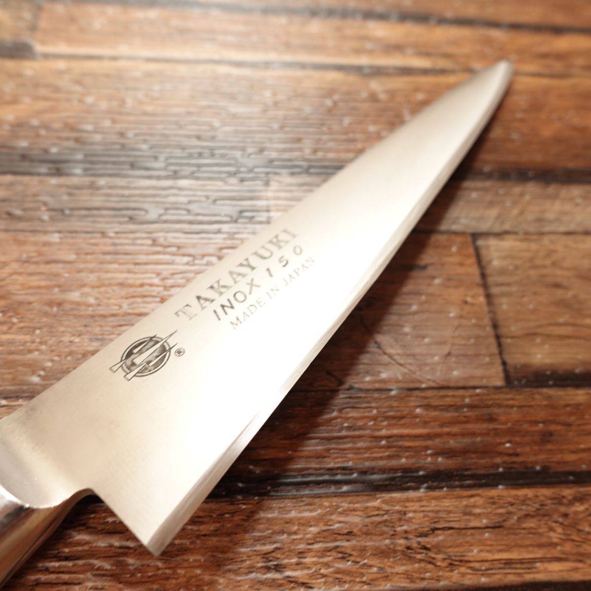This knife features the engravings "TAKAYUKI," "INOX 150," and "Made in Japan."